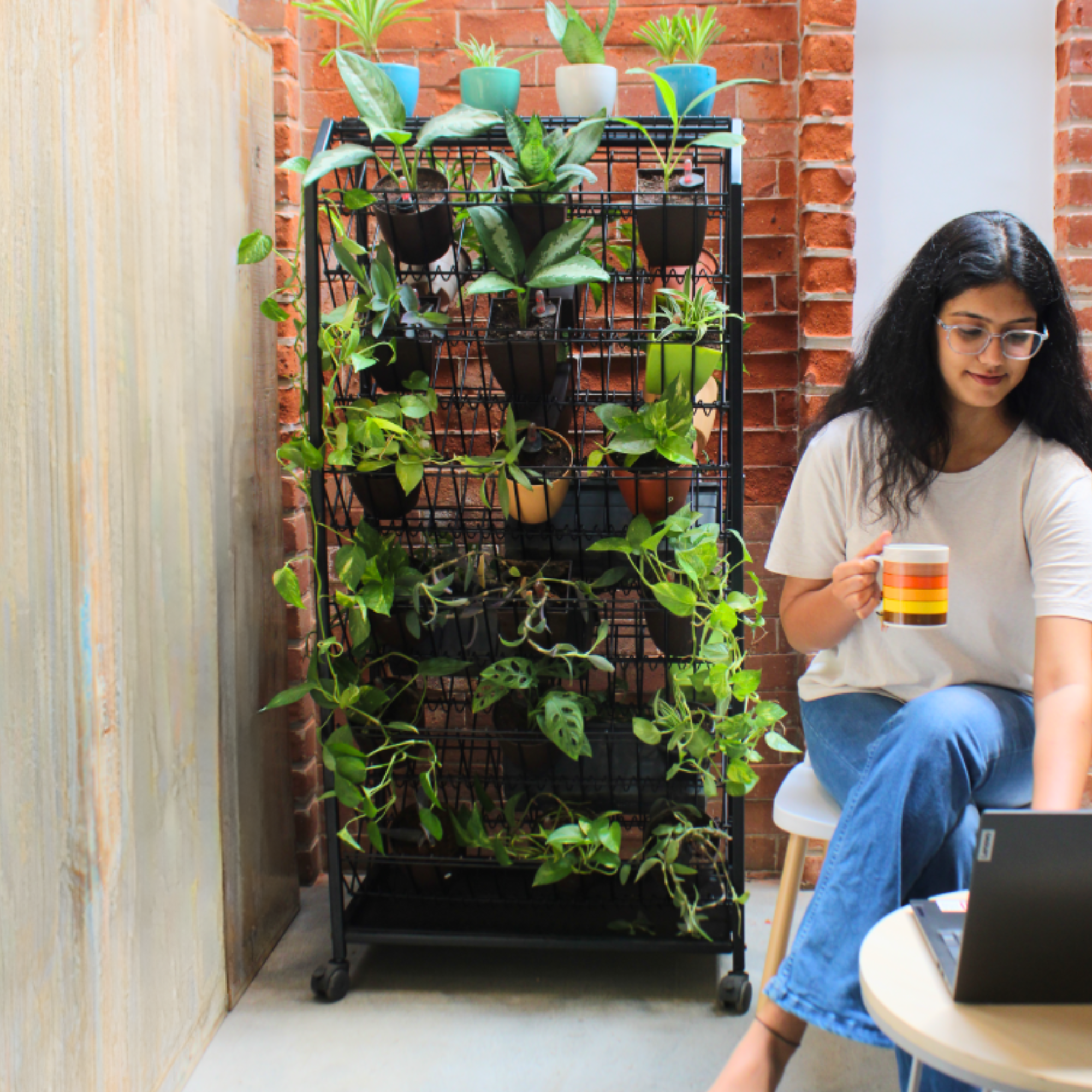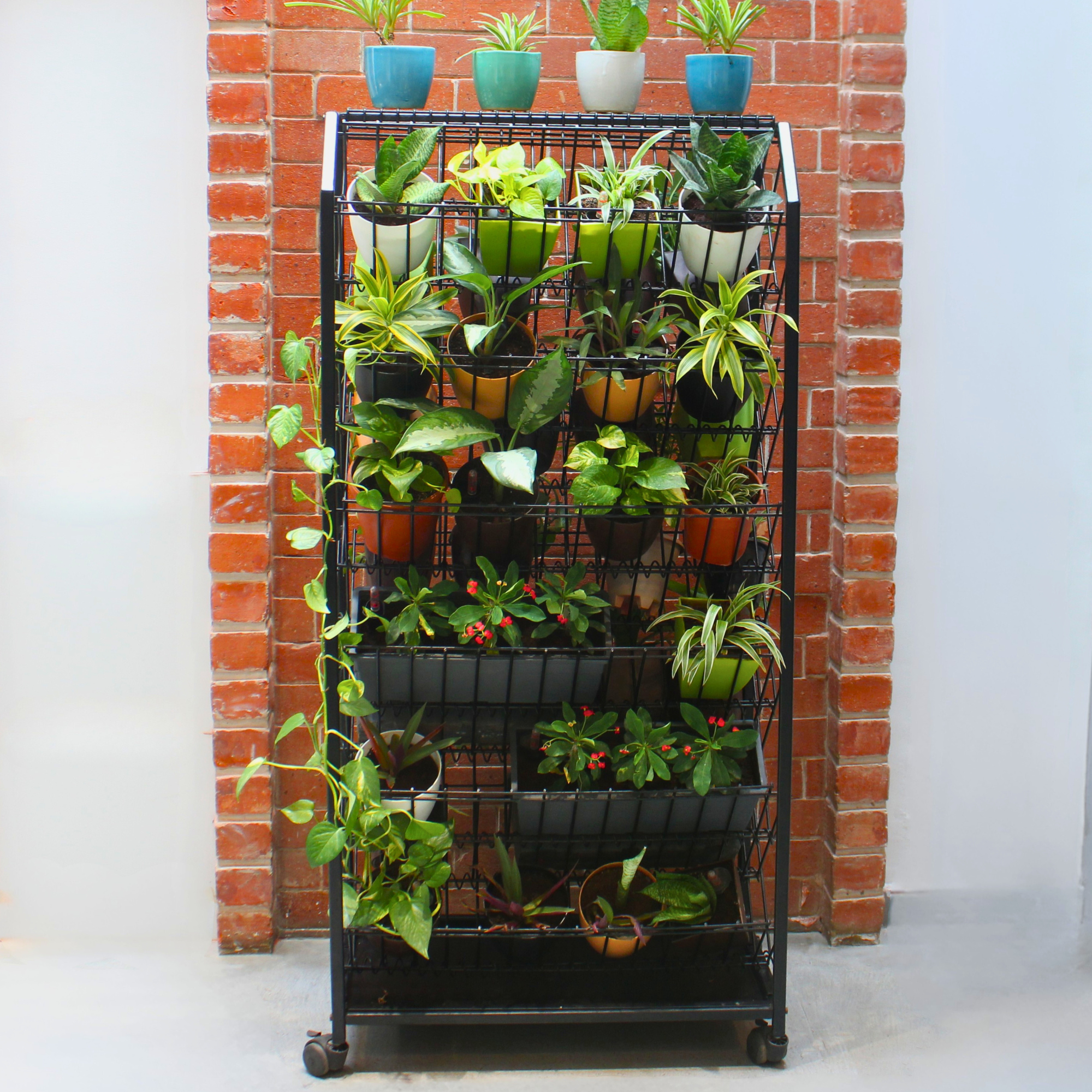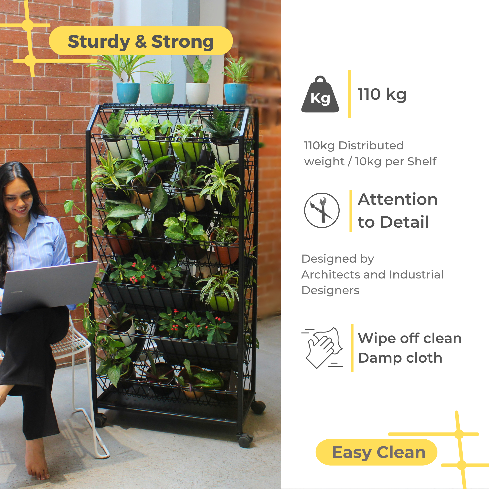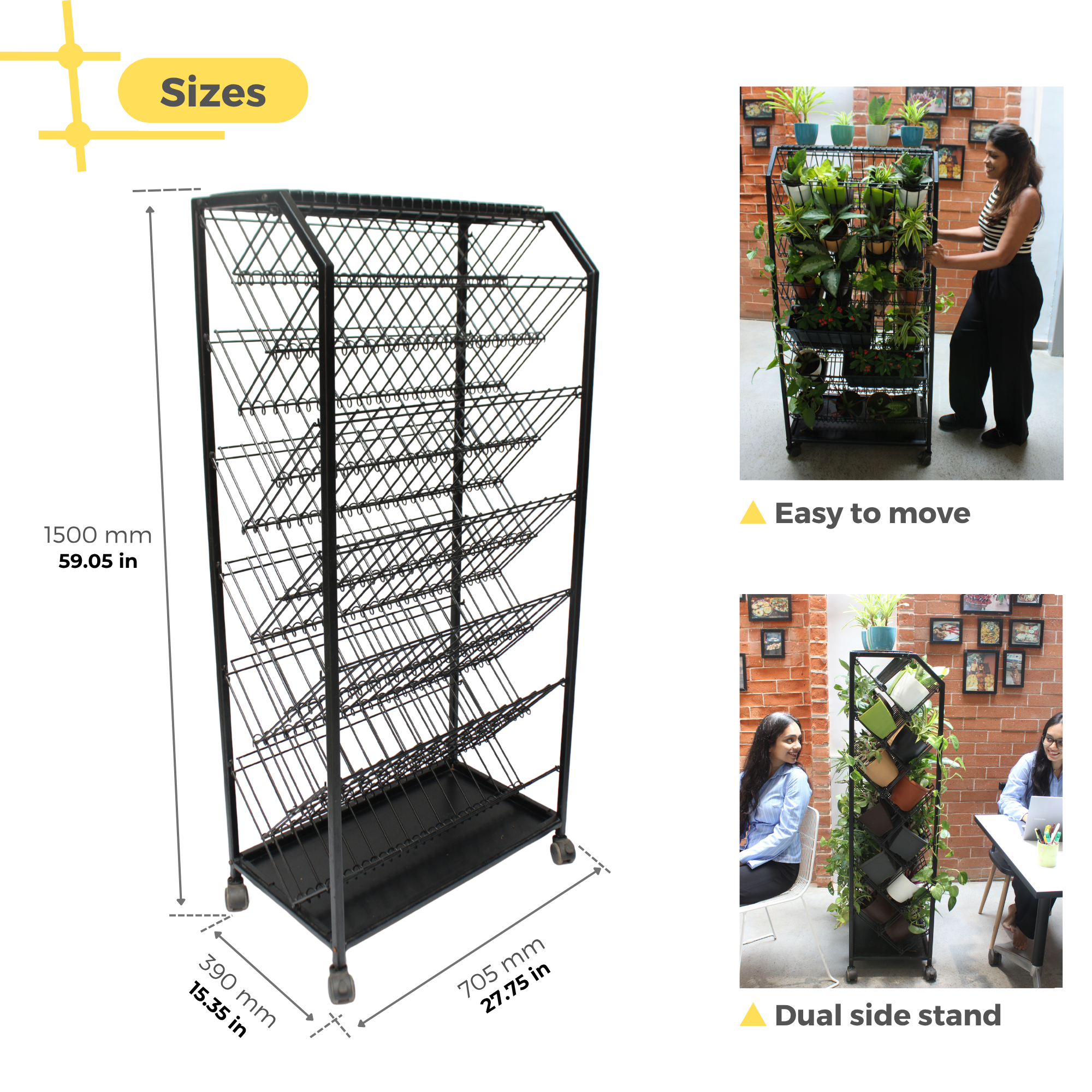 VERSATILE & MULTI-PURPOSE: Versatility is at the core of Greenest. Its ingenious design allows a green and stunning display on both its vertical surfaces making it a remarkably beautiful addition to any space. This vertical garden can nest 30+ potted plants making it a plant lover's delight. A compact and innovative form of the shelves that become a stunning home for your plants or an enviable and unique space divider of any hospitality space like cafes, restaurants and hotels.