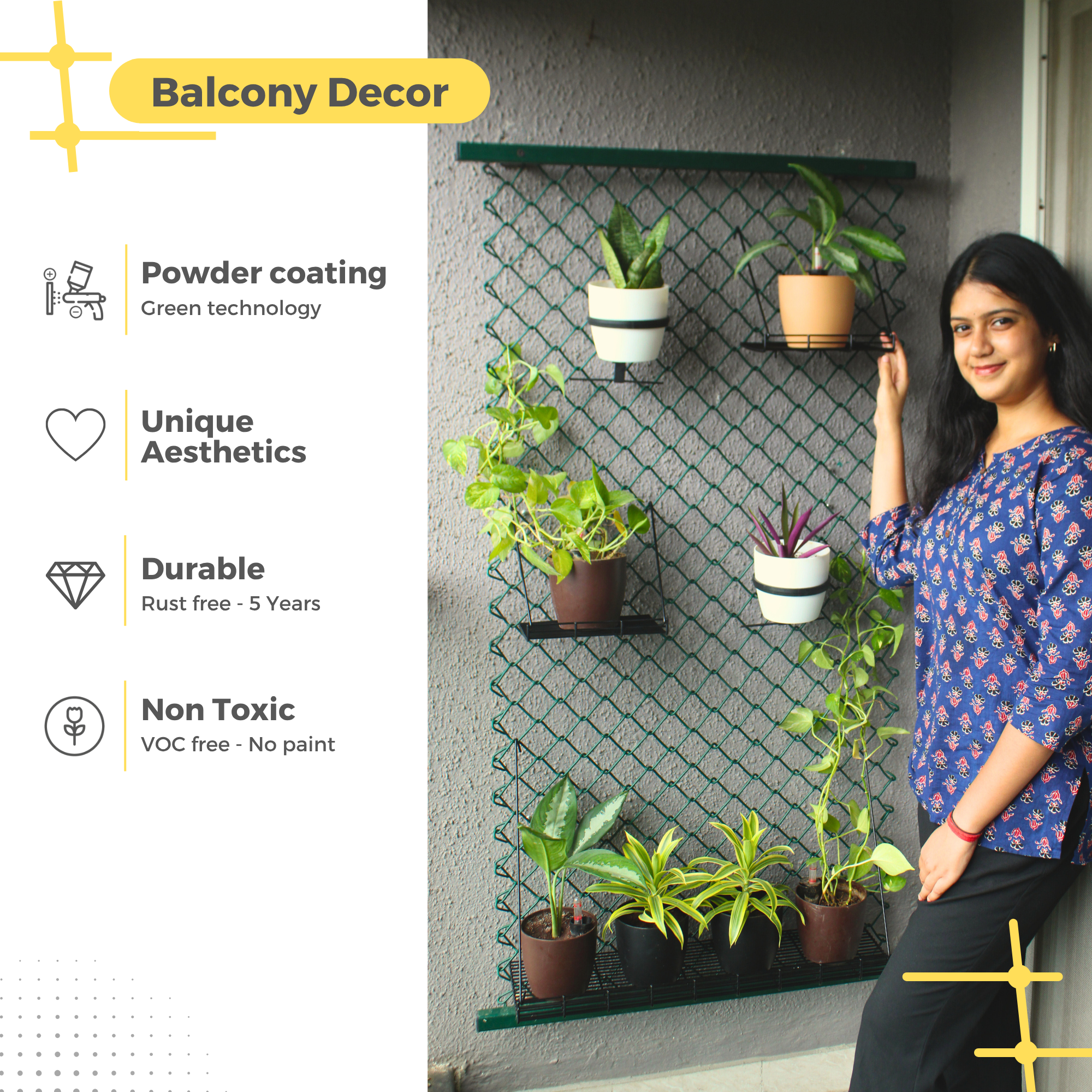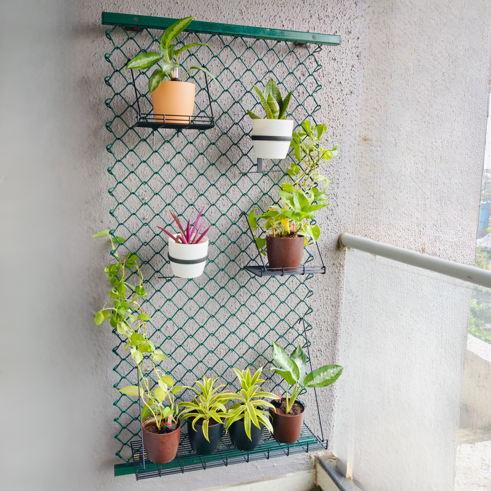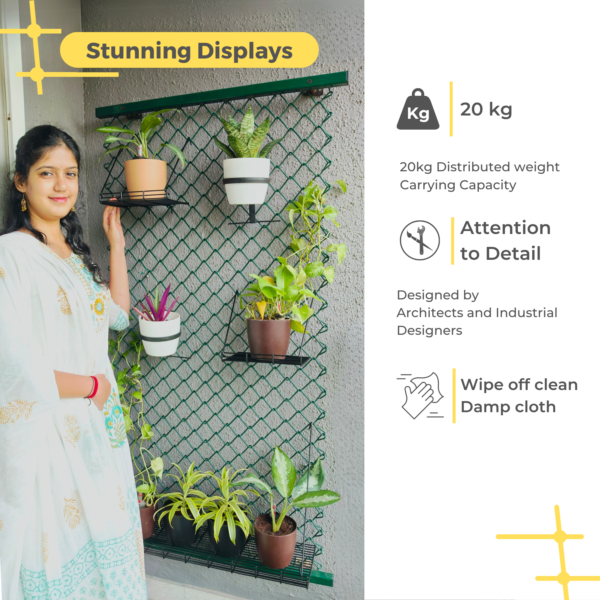 AESTHETIC GREEN WALL: Grellis curtain is a plant trellis with a beautiful kite shaped mesh pattern. Ideal for an Urban Dweller constrained by space, this mesh on the wall opens up a myriad of possibilities to grow your garden vertically. Grellis grid comes with a detachable tray for your pots making it a complete vertical gardening solution.