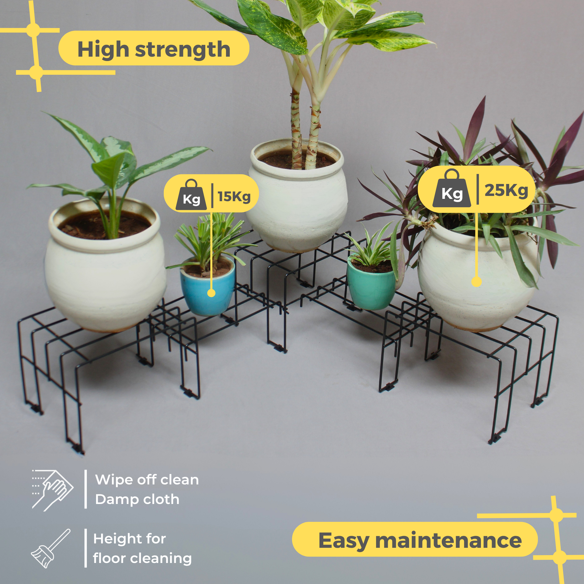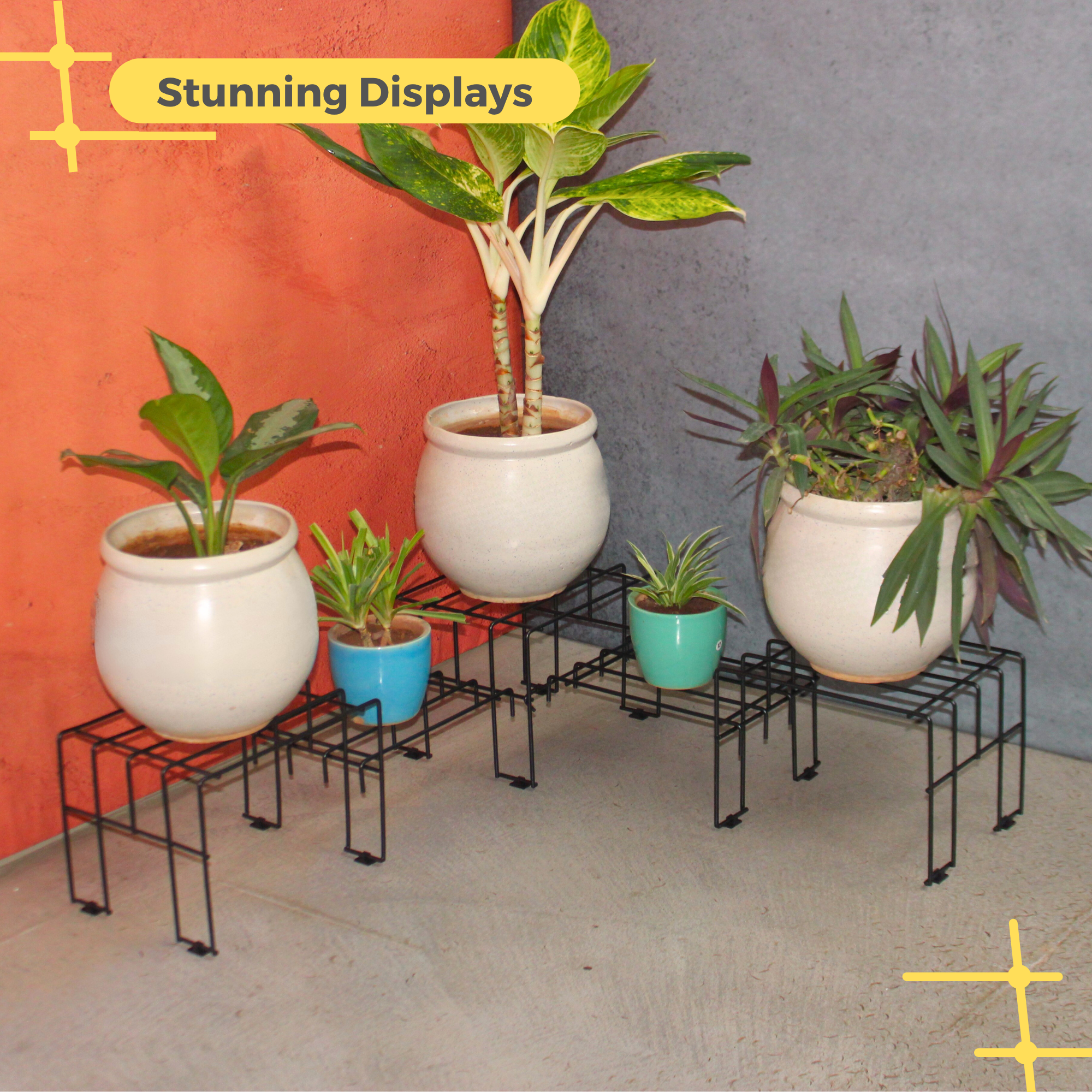 DURABLE- LONG RUST FREE LIFE: Durability is at the core of Moso's design. The highly rust-resistant GI wire mesh, meticulously machine-welded and powder-coated in a controlled environment, ensures a long and rust-free life. This makes Moso Plus suitable as a durable plant stand for your balcony, allowing it to withstand the elements, be it rain or shine, without compromising its beauty. Let this rust proof pot stand be your constant companion, whether gracing your balcony, verandah, living room, window ledge or entrance foyer.