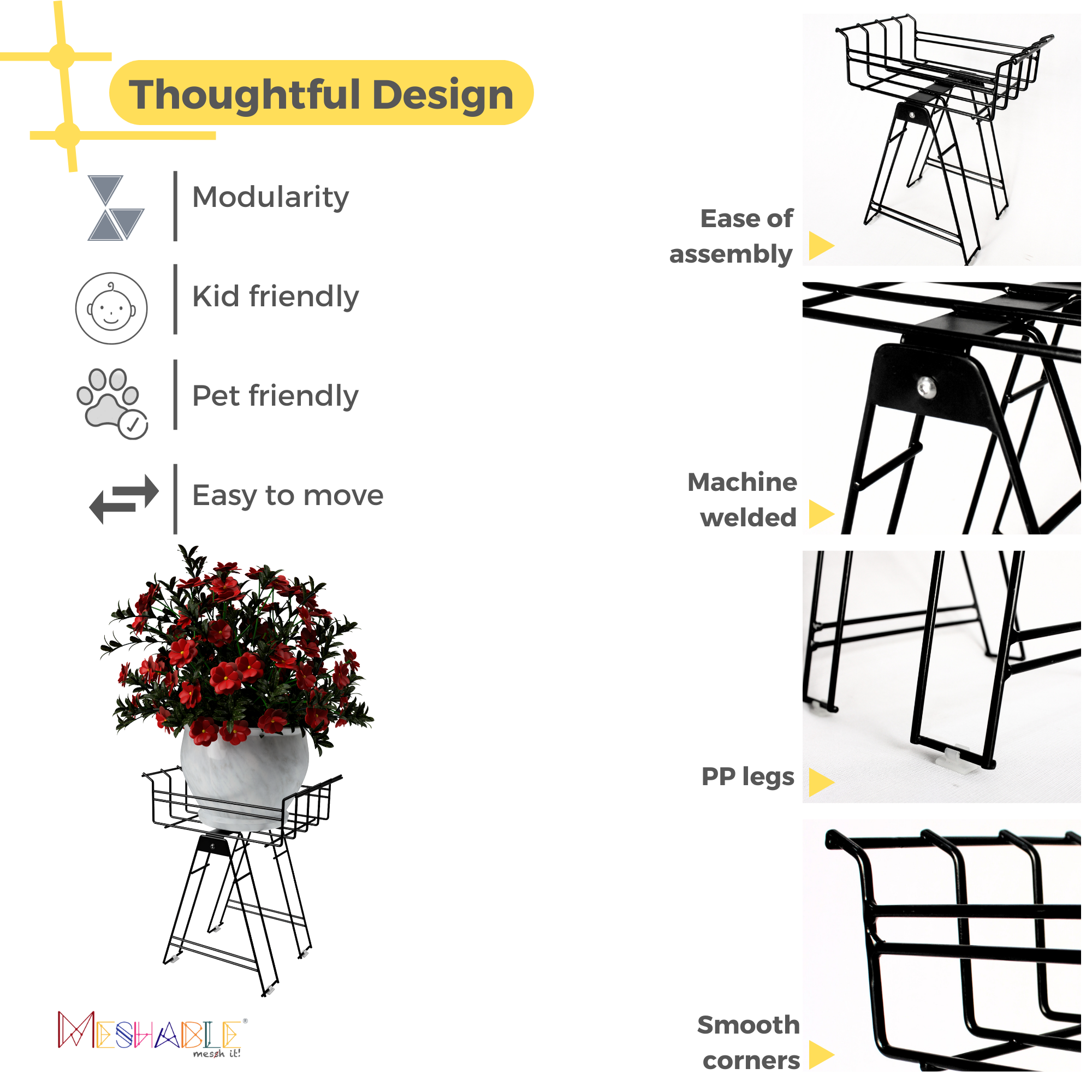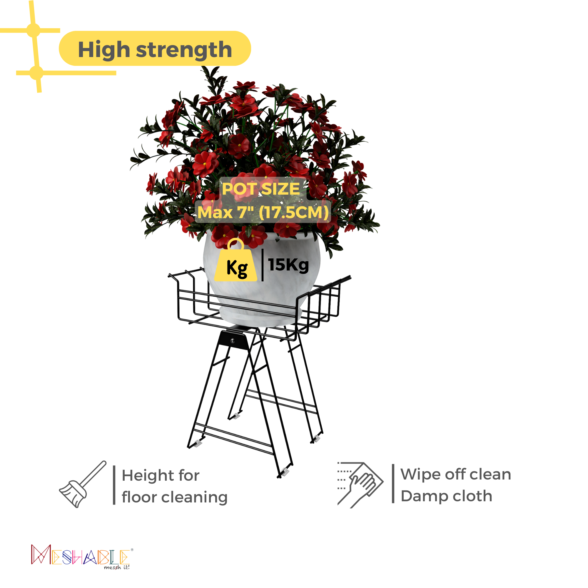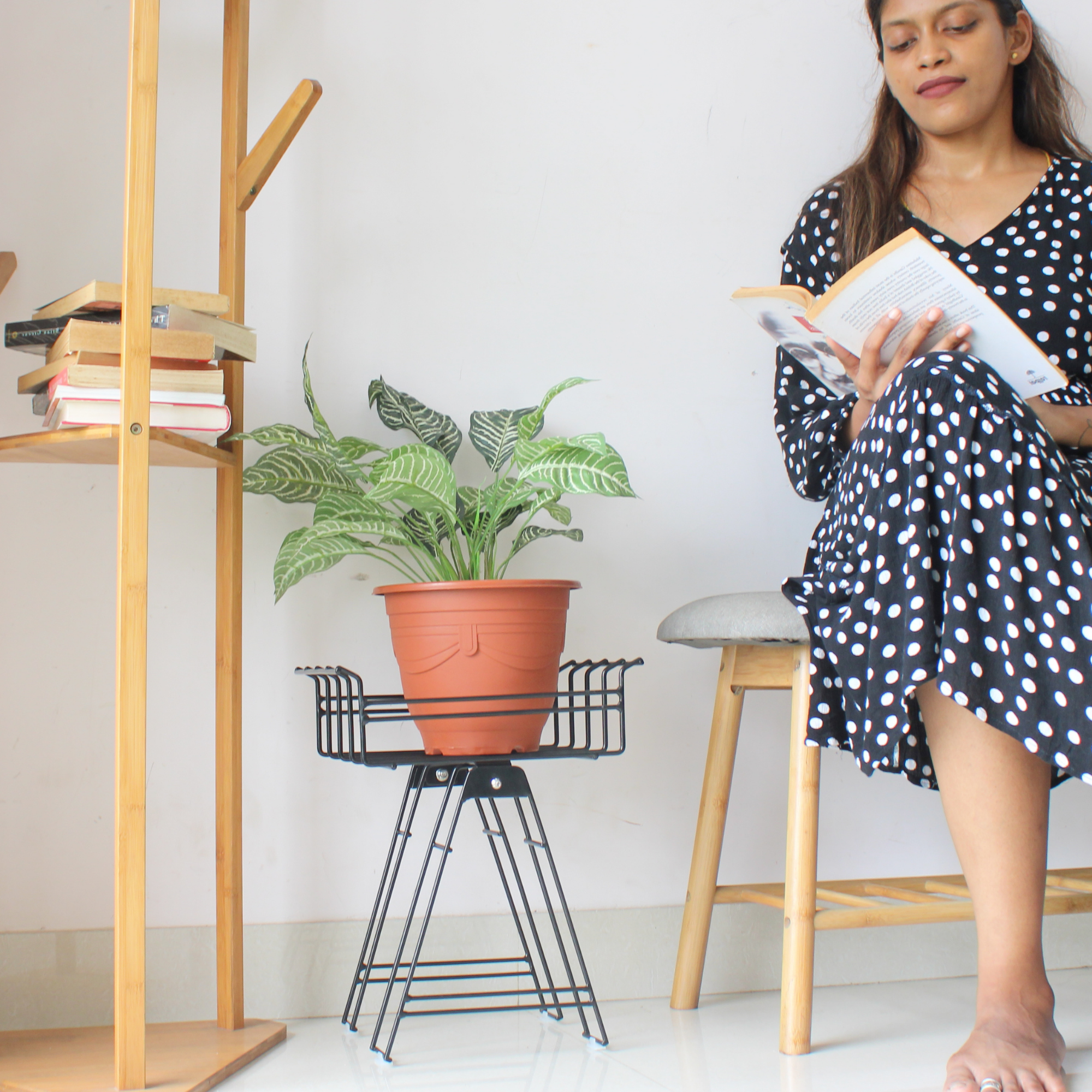 DURABLE- LONG RUST FREE LIFE: Durability is at the core of Nelumbo's design. The highly rust-resistant GI wire mesh meticulously machine-welded and powder-coated in a controlled environment, ensures a long and rust-free life. This makes Nelumbo suitable as a durable plant stand for your balcony, allowing it to withstand the elements, be it rain or shine, without compromising its beauty. Let this rust proof pot stand be your constant companion, whether gracing your balcony, verandah, washrooms or your living room.
