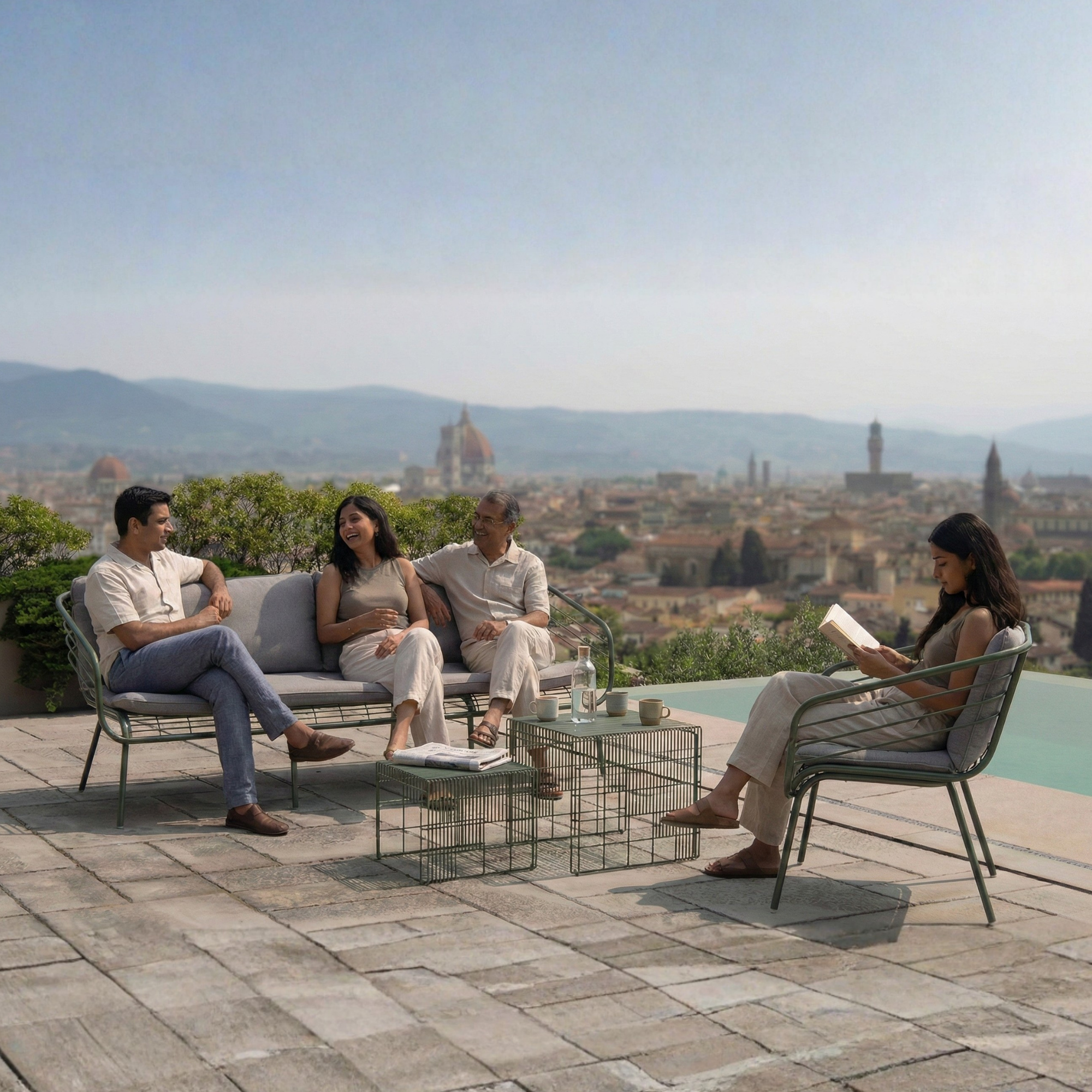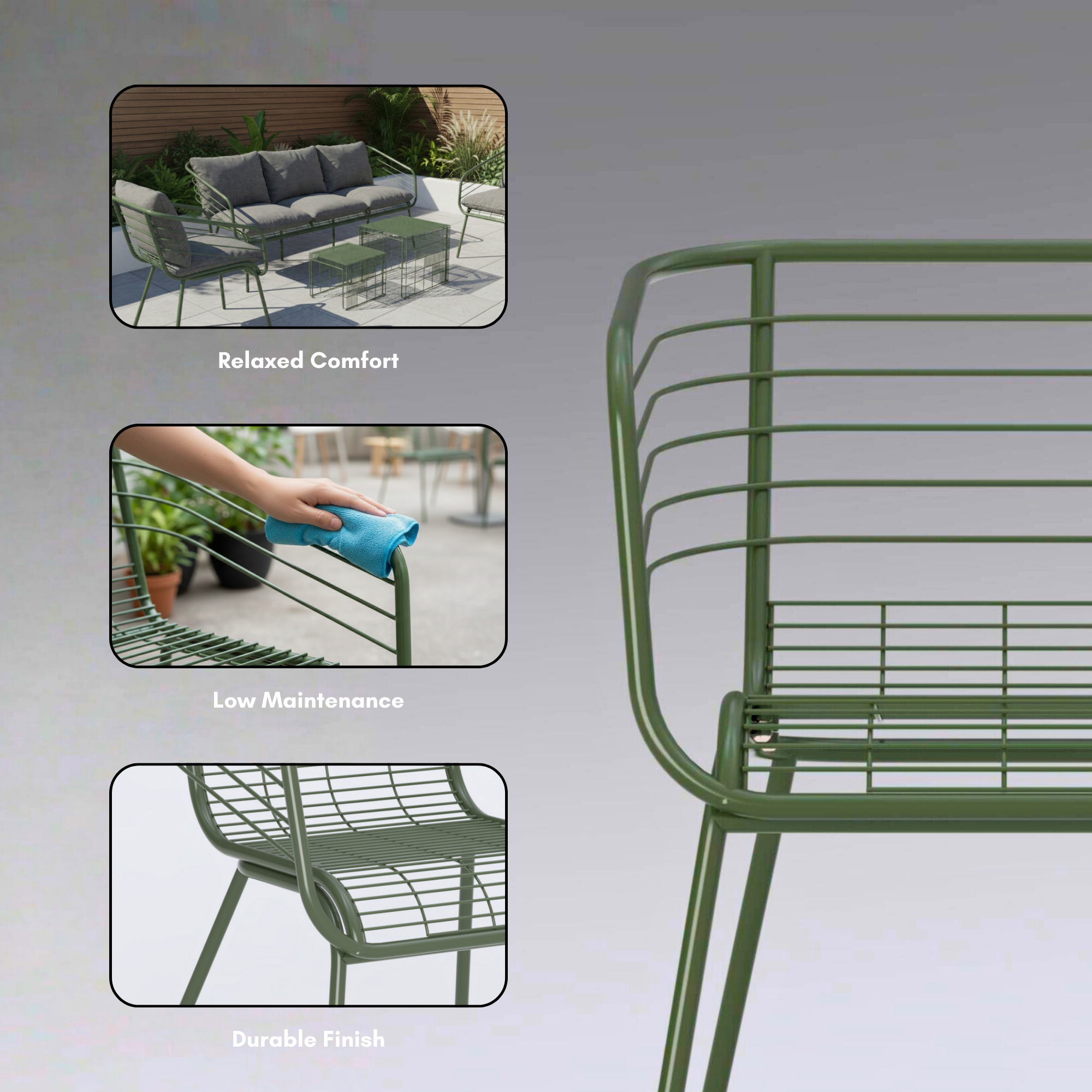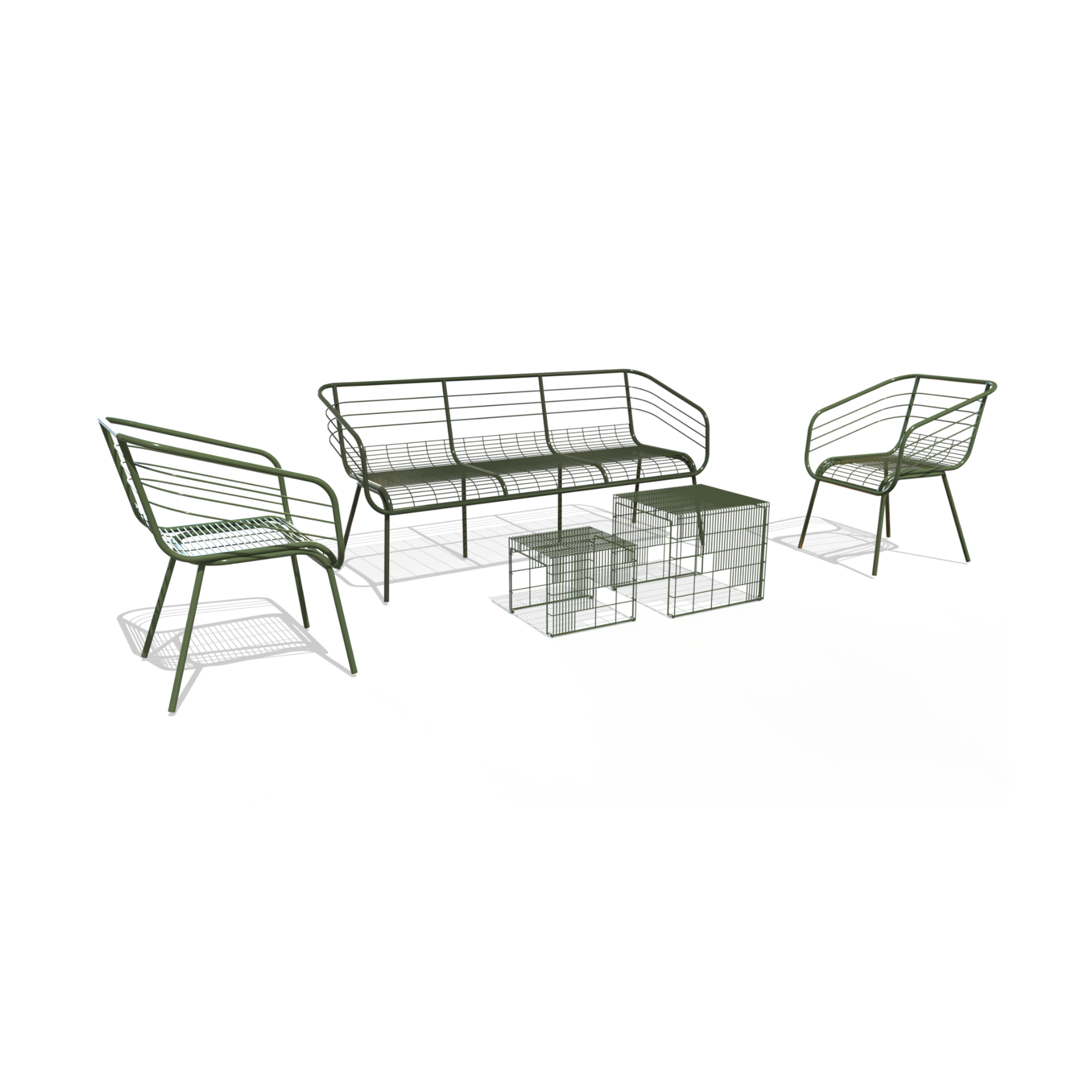 This furniture is manufactured with high quality mild steel mesh finished with exterior grade dual powder coating under controlled factory environment. The upholstery/cushions are crafted for comfort and durability with high density foam and outdoor grade fabrics.