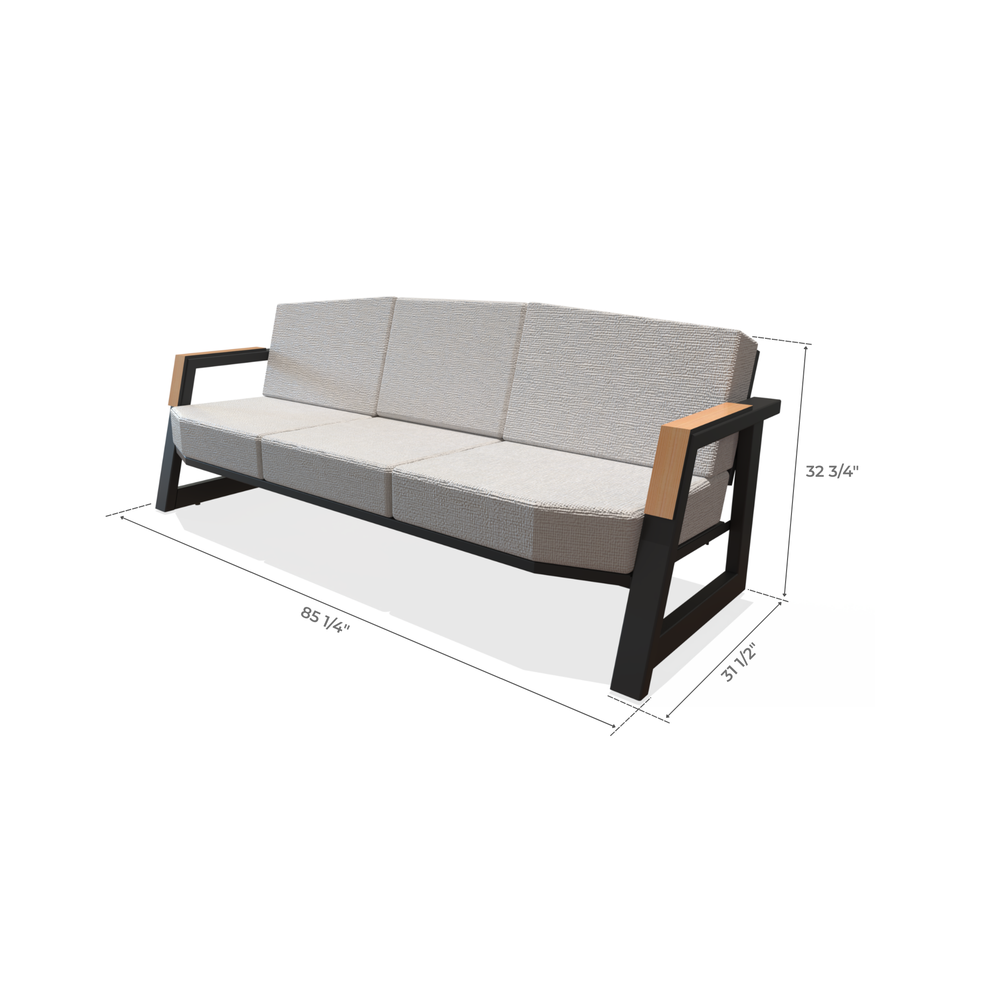 Three seater : L 85 1/4" × W 31 1/2" × H 32 3/4"