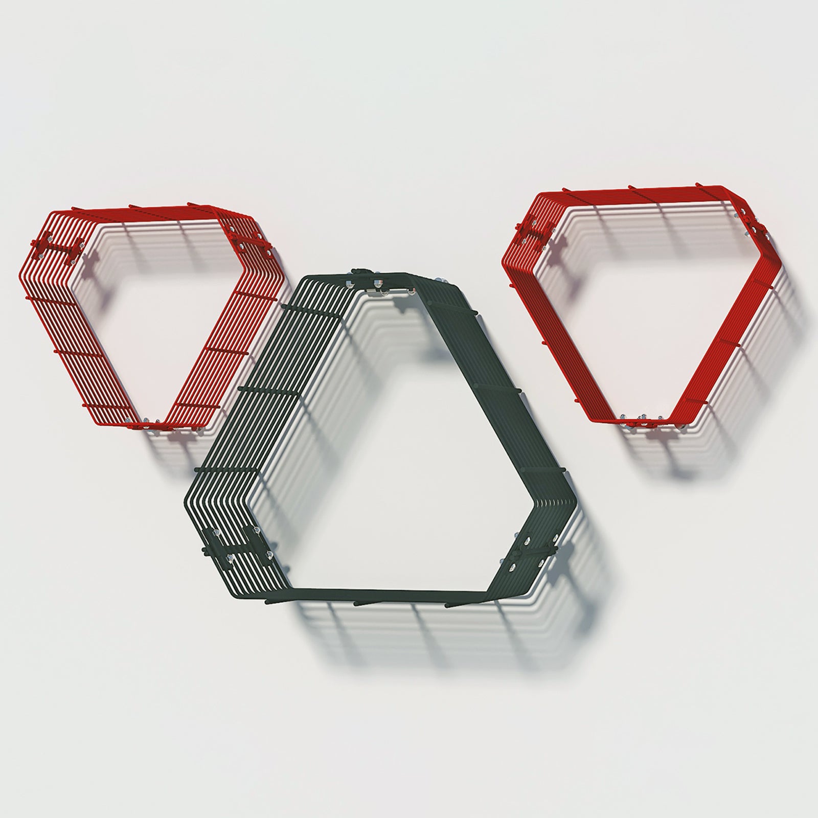Kinglet is modular wall mounted shelf with a distinctive geometry that adds a new dimension to your space.