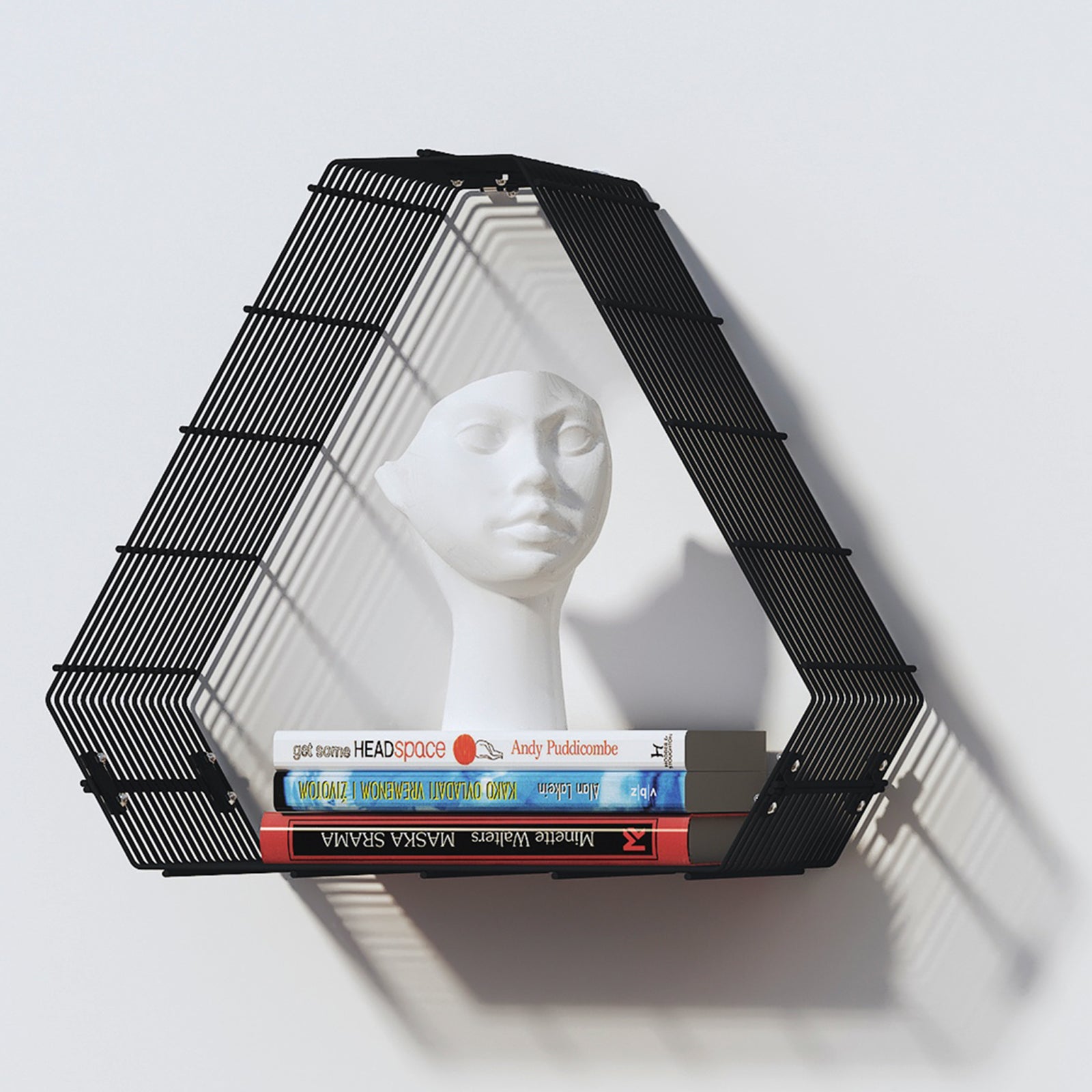 Kinglet is modular wall mounted shelf with a distinctive geometry that adds a new dimension to your space.