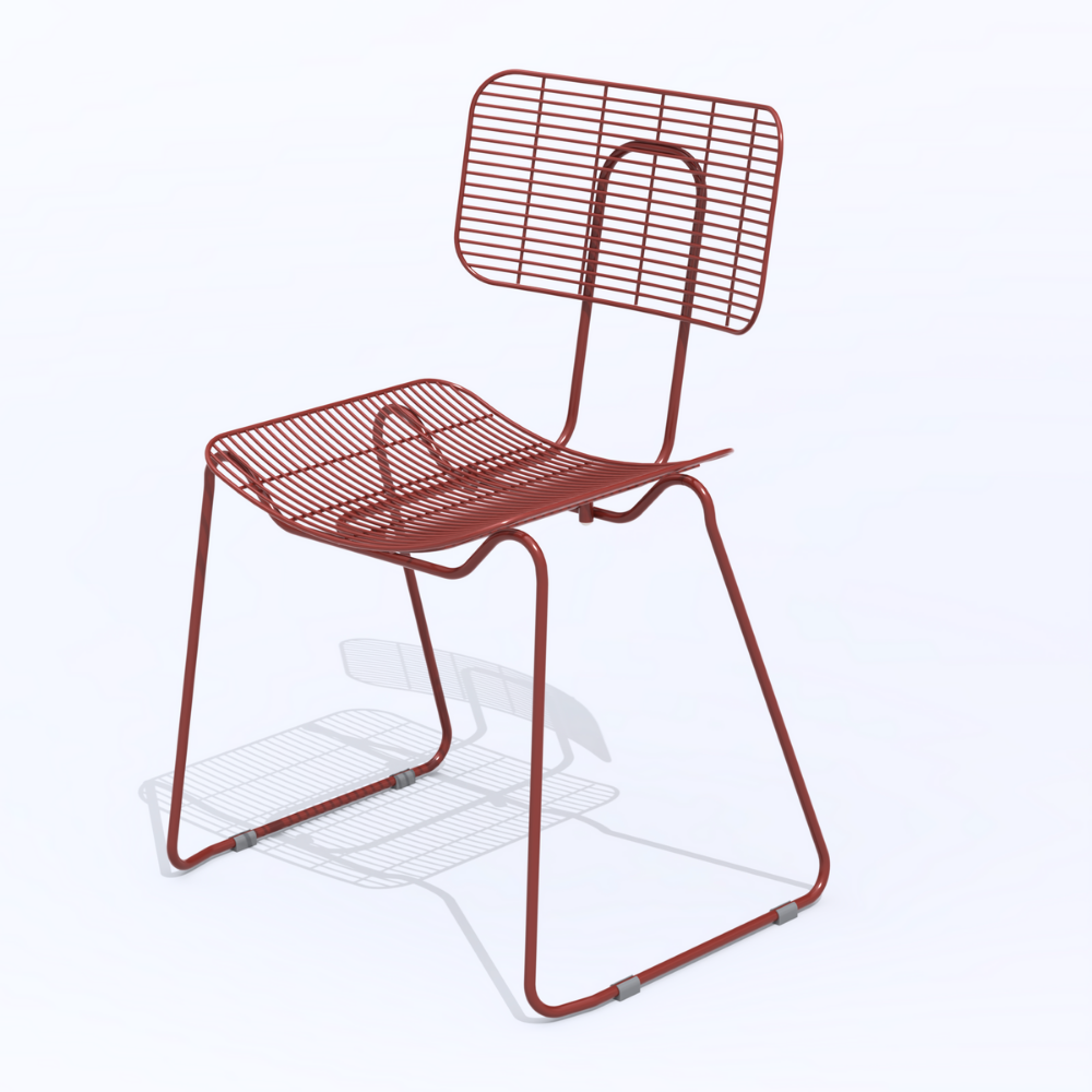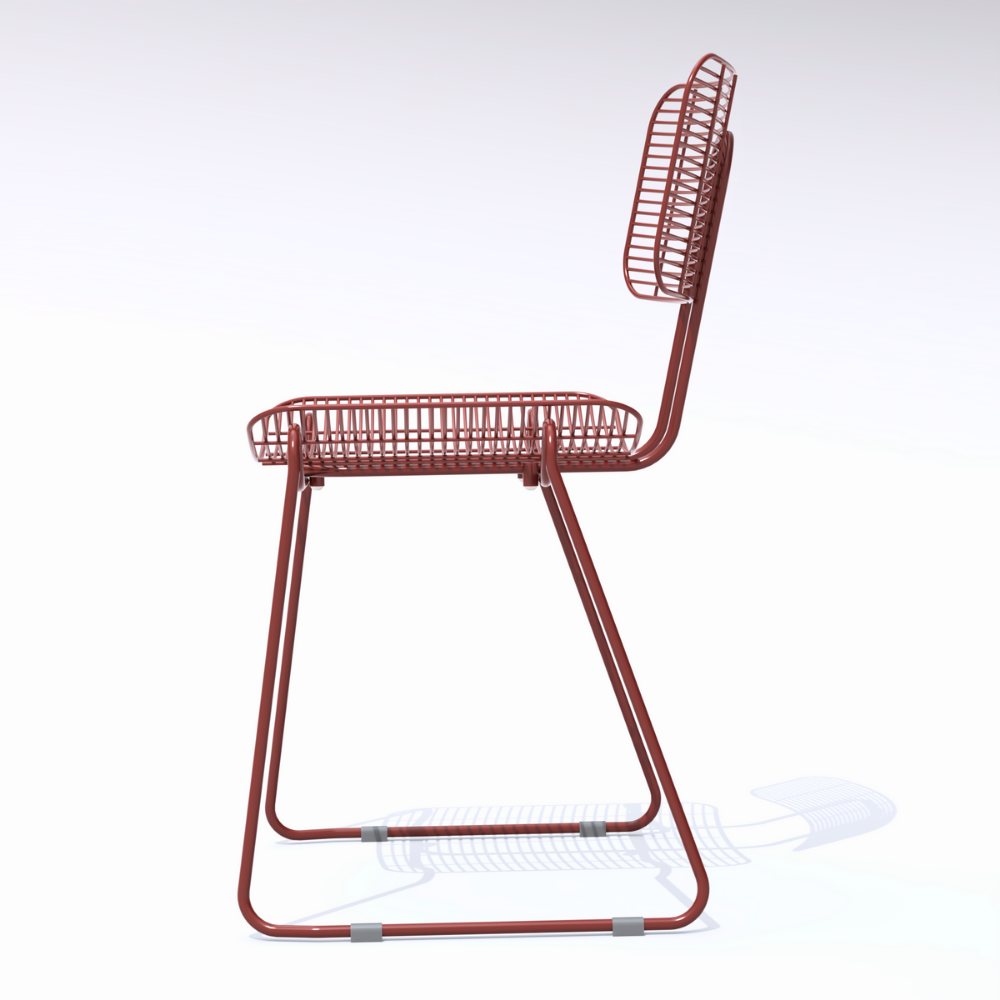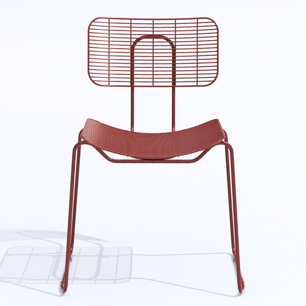 Curvaceous classic chair made of welded metal wire mesh with outdoor-grade powder coating in smooth finish.