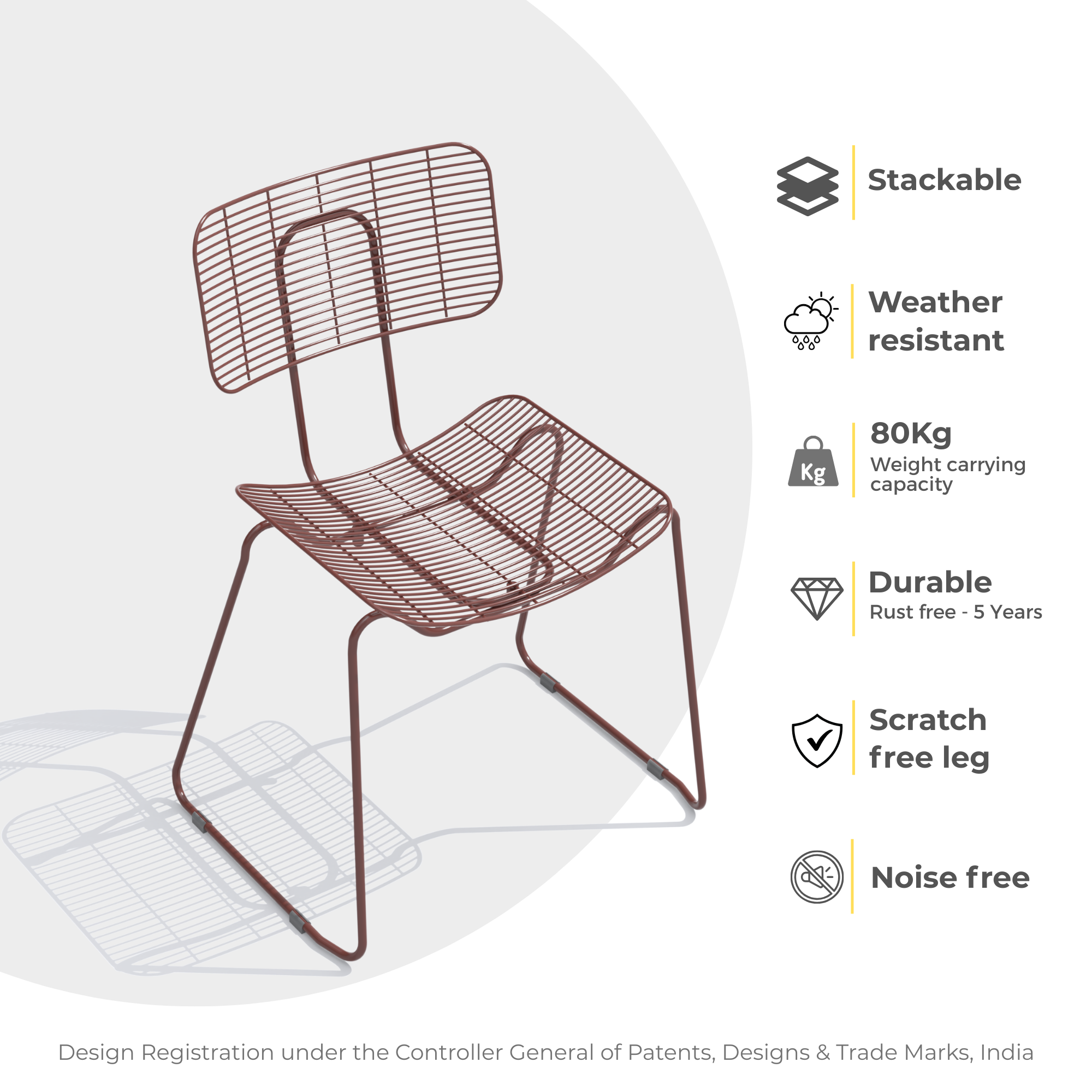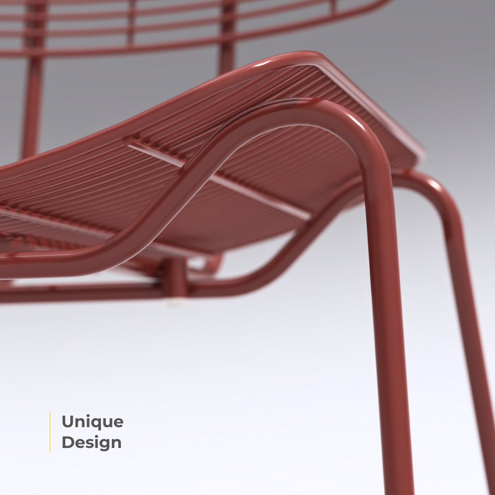 Introducing Pebble chair, a charming blend of vintage curves and modern sleekness. It's durable Welded mesh design is weather-resistant and stackable, making it perfect for effortless storage and flexible outdoor seating