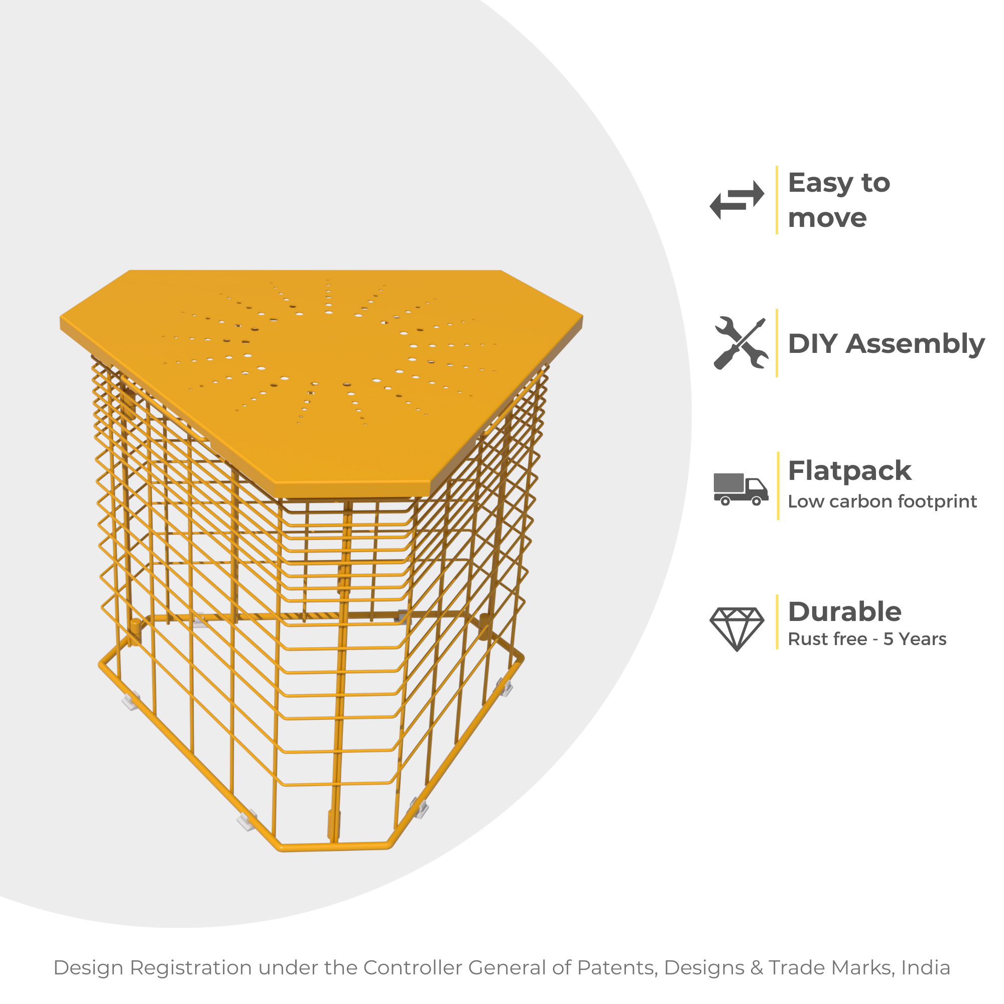DESIGN REGISTRATION under Controller General of Patents, Design & Trade Marks, INDIA.