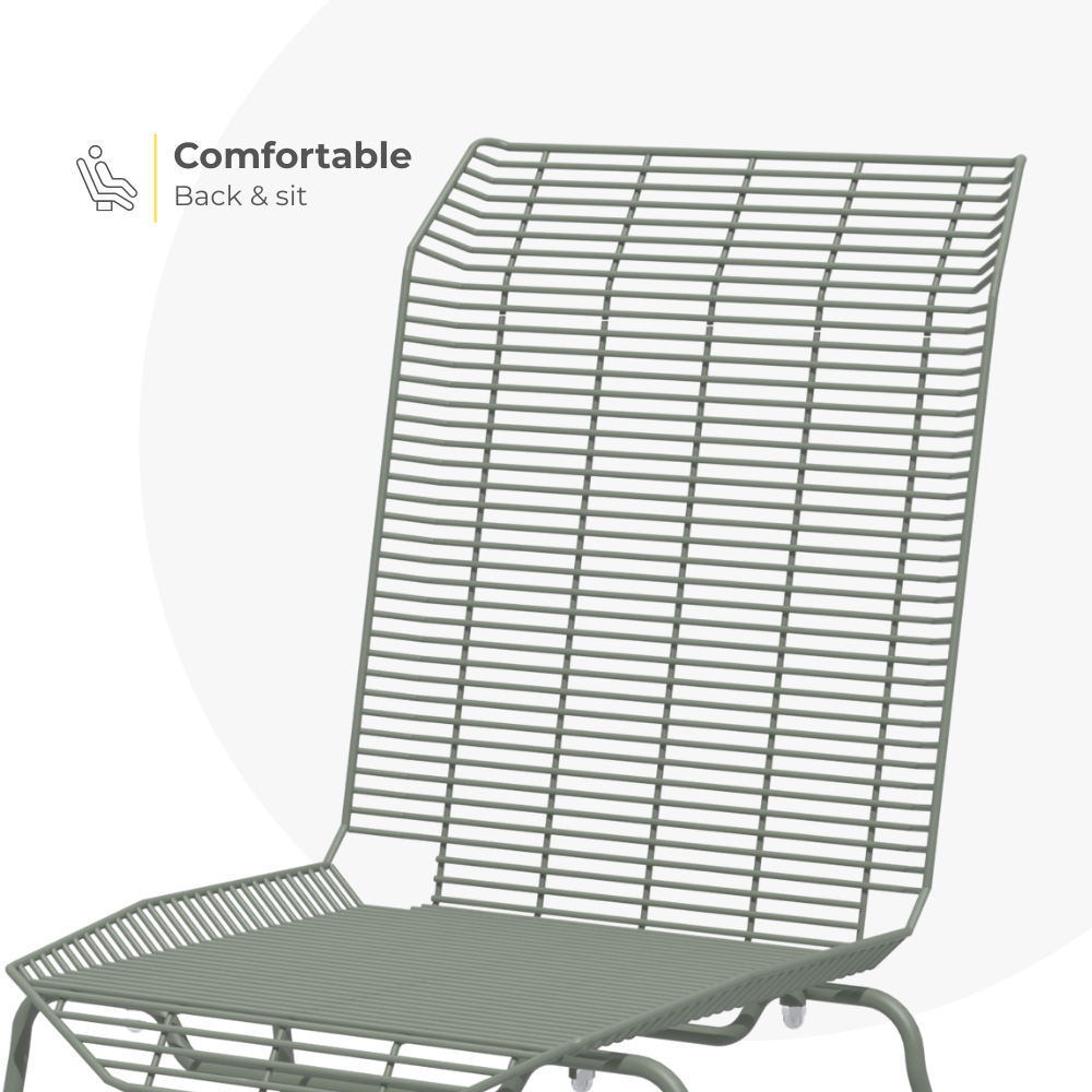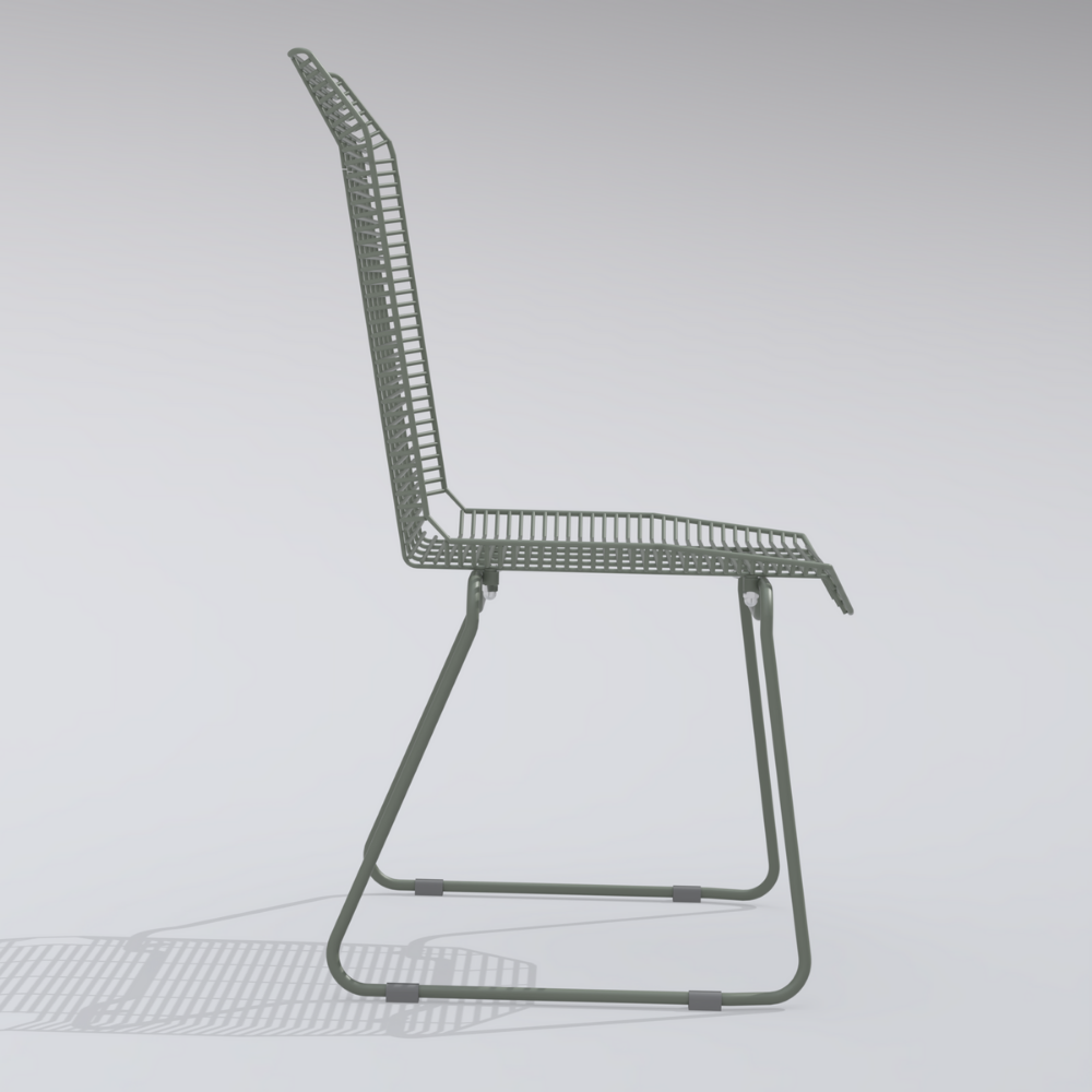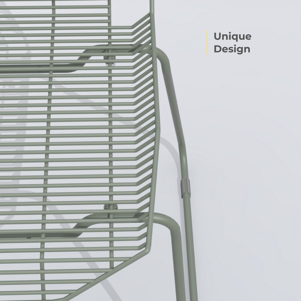 Sculpted welded mesh chair with powder-coated smooth finish and comfortable ergonomic form.