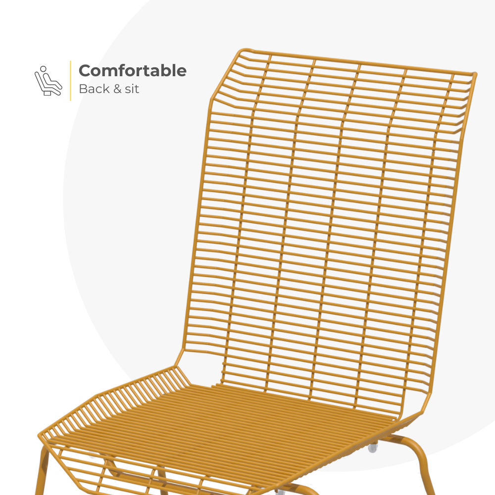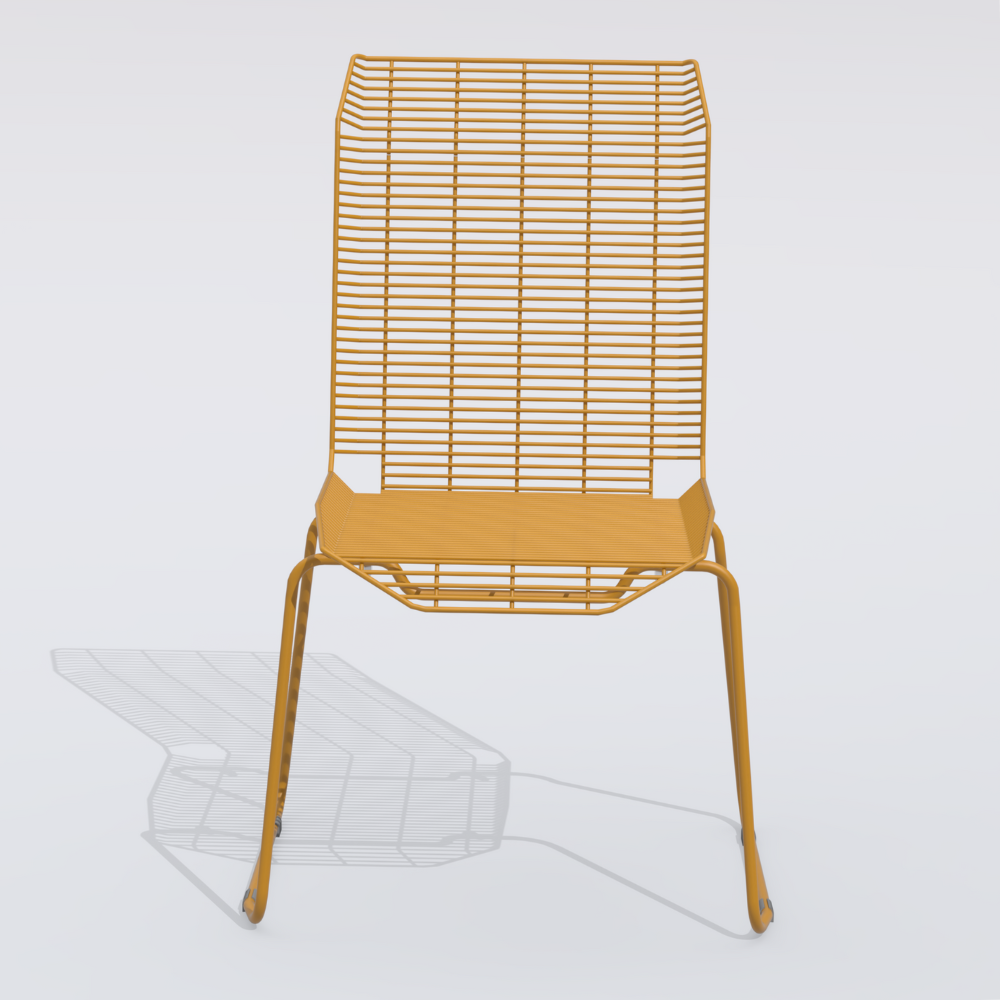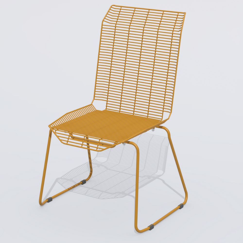 Sculpted welded mesh chair with powder-coated smooth finish and comfortable ergonomic form.