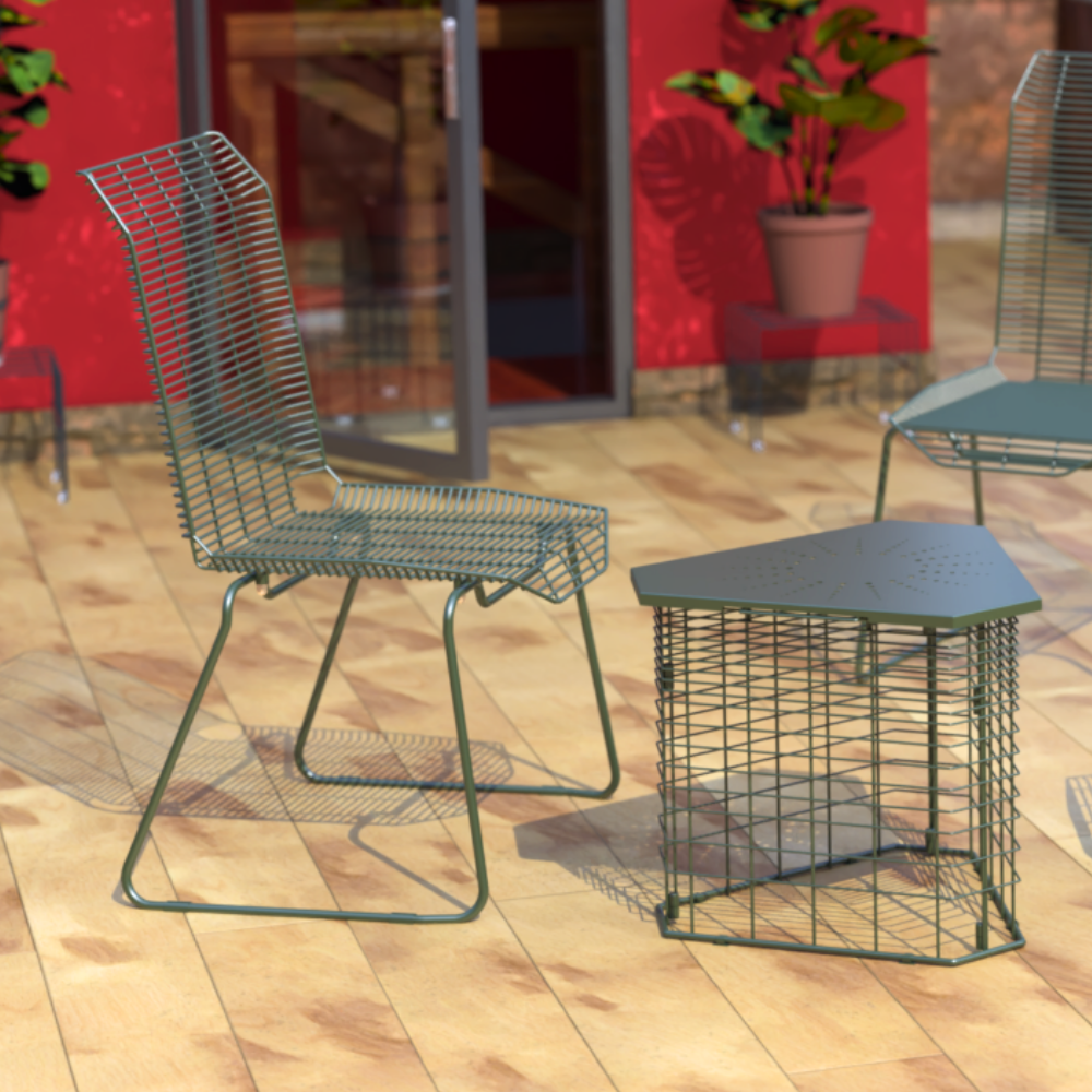 It's unique industrial chic aesthetic makes it perfect for hospitality spaces, cafes and outdoor dinning.