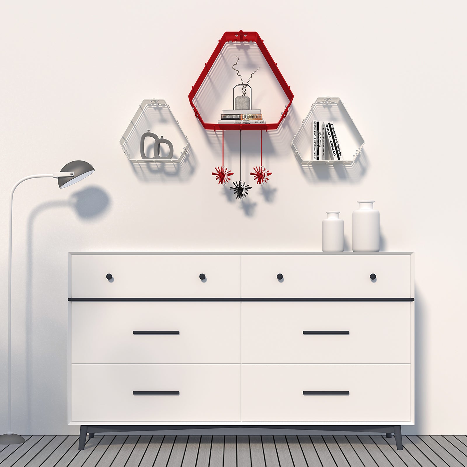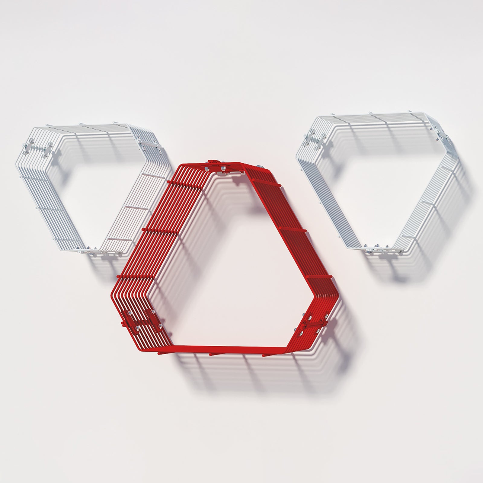 Kinglet is modular wall mounted shelf with a distinctive geometry that adds a new dimension to your space.