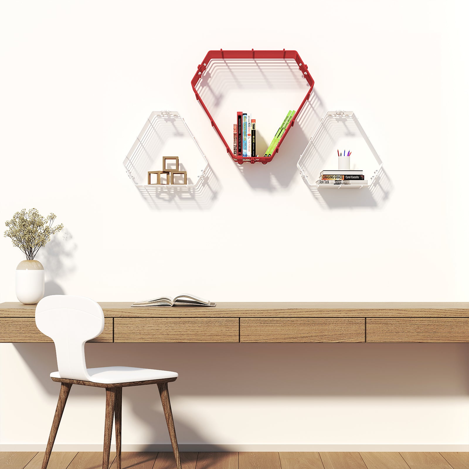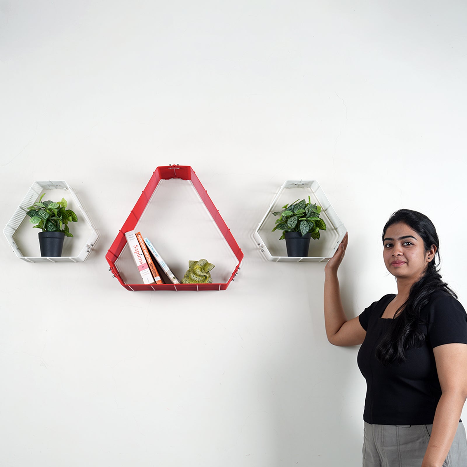 MODERN, MINIMALIST DESIGNER SHELF: Kinglet is a nested designer wall shelf with a distinct modern appeal. It's unique geometry makes it an interesting wall decor adding a new dimension to your space. Not just a shelf but a piece of art, adorning your wall.