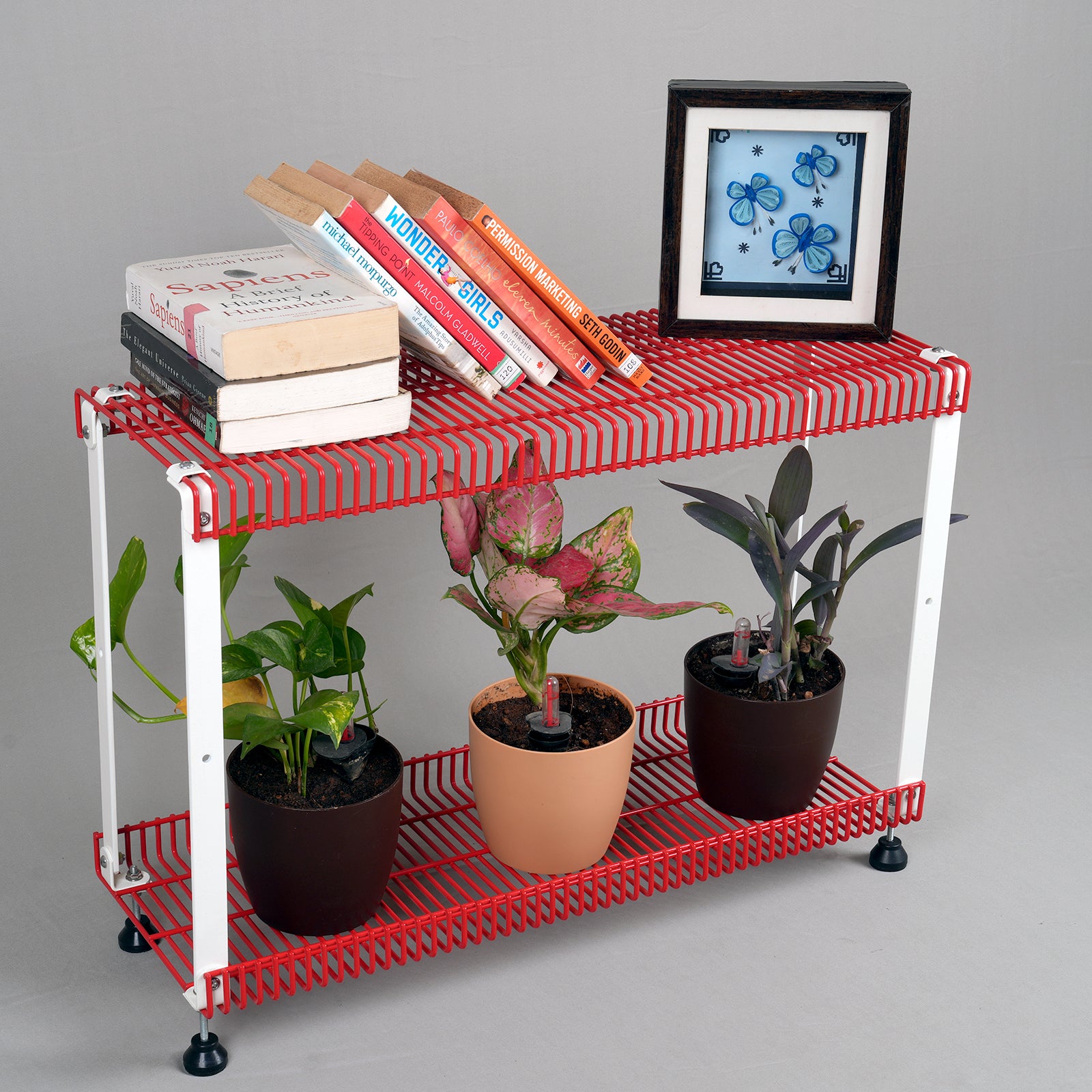 VERSATILE & MULTI-PURPOSE: Versatility is at the heart of MarMelos. This tiered multipurpose stand is meticulously crafted with a unique scissor support design, exuding a captivating character that effortlessly enhances any living space. Its simple yet captivating metal mesh stand serves as a perfect organizer, accommodating not only your beloved potted plants but also your cherished books and treasured possessions. Available in 3-tiers and 2-tiers, MarMelos adapts to your needs. In its 2-tiered avatar, it effortlessly transforms into a stylish garden bench, creating a serene and inviting space for relaxation. Whether as a book rack in your study, a standing shelf for easy access items in the living room, or a stunning organizer for your pots and plant as an outdoor and indoor garden plant stand.