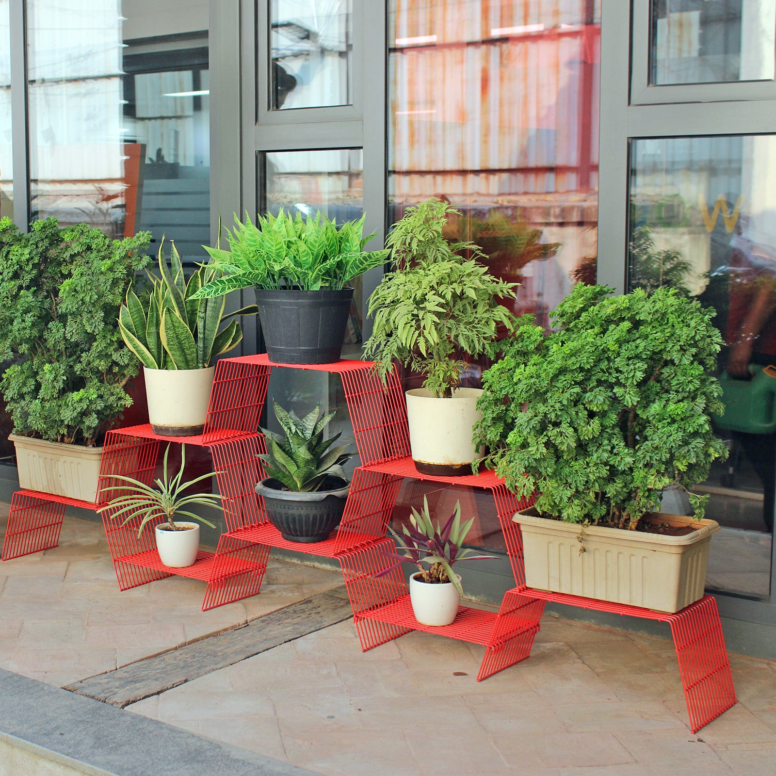 Potted plants can be added to multiple heights for a visually stunning and organized display.
