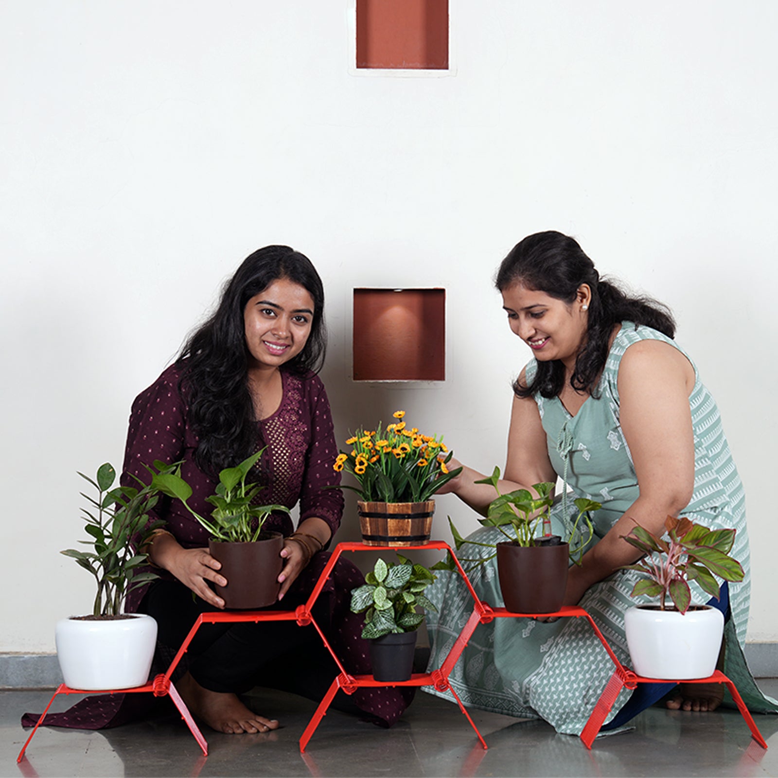Potted plants can be added to multiple heights for a visually stunning and organized display.