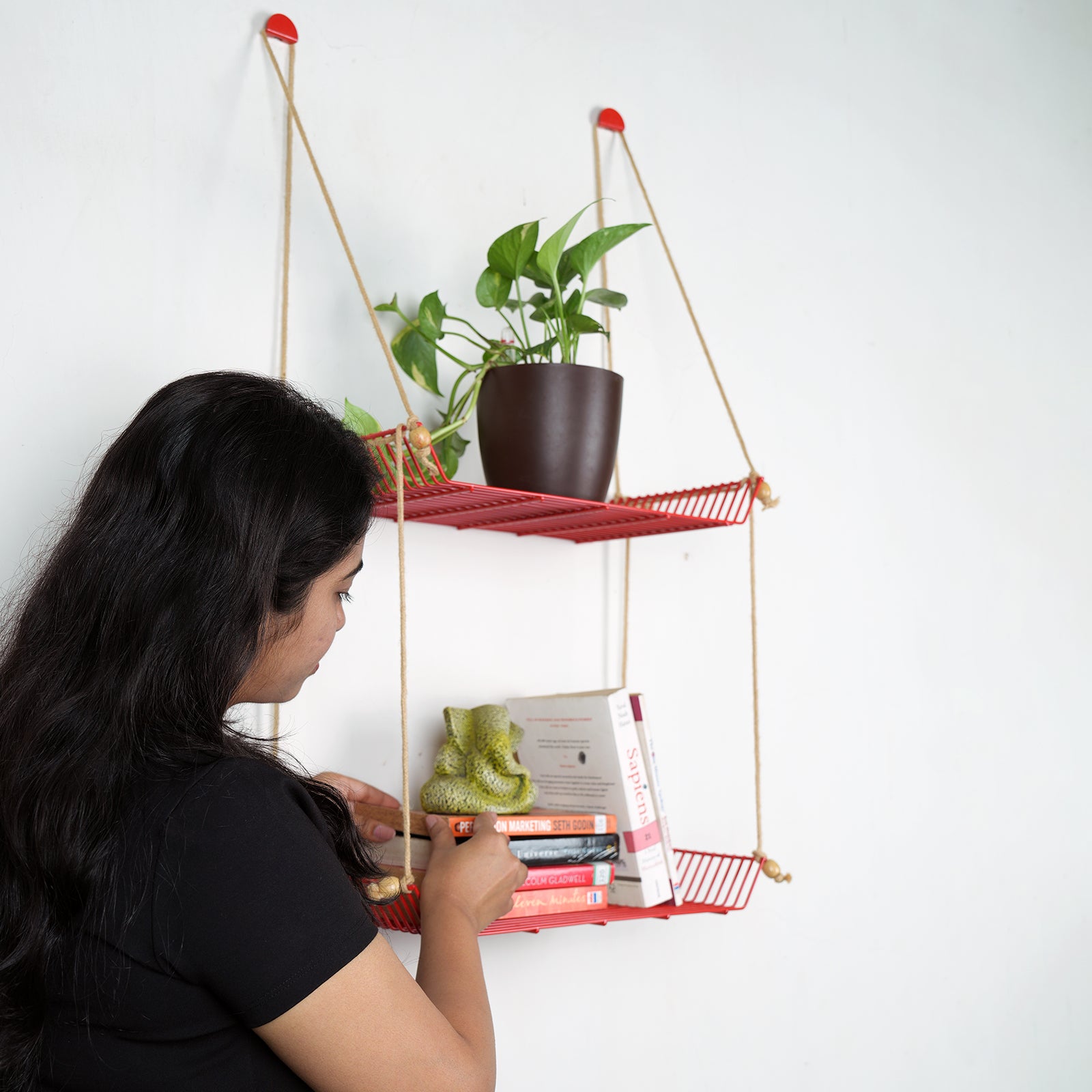 VERSATILE ARRANGEMENTS, MODULAR FREEDOM, UNIQUE AESTHETIC: The design of this wall shelf allows you to add multiple layers and racks, thus giving you complete freedom to personalize your home. Its available as one, two and three tiers, its modular jute and bead arrangements allows you to add on an extra tier without any worry. Red, grey, and white colours give you the option to organize in style to suit your personal style and space.