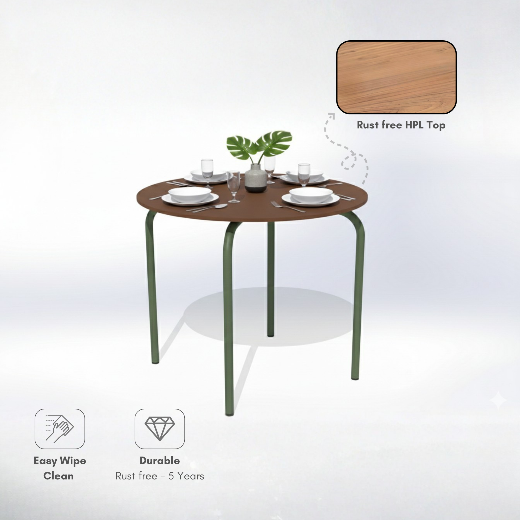 Manufactured to precision with sheet metal top and MS legs finished with exterior grade dual coat powder coating, it can withstand the test of environment and time. Available with laser cut design option on sheet metal top OR HPL/engineered wood top Solido series of tables connect to outdoor life through its simple and reliable designs.