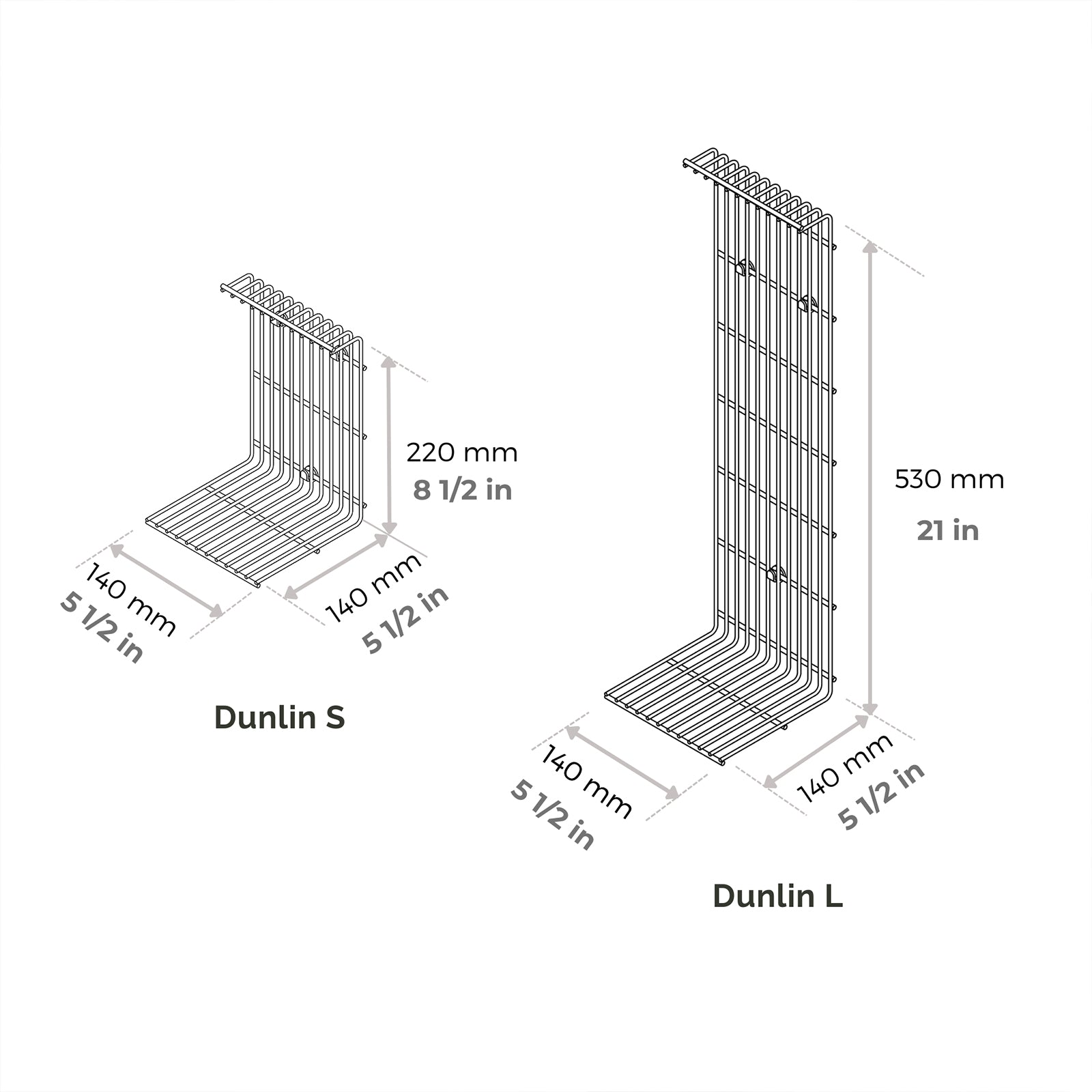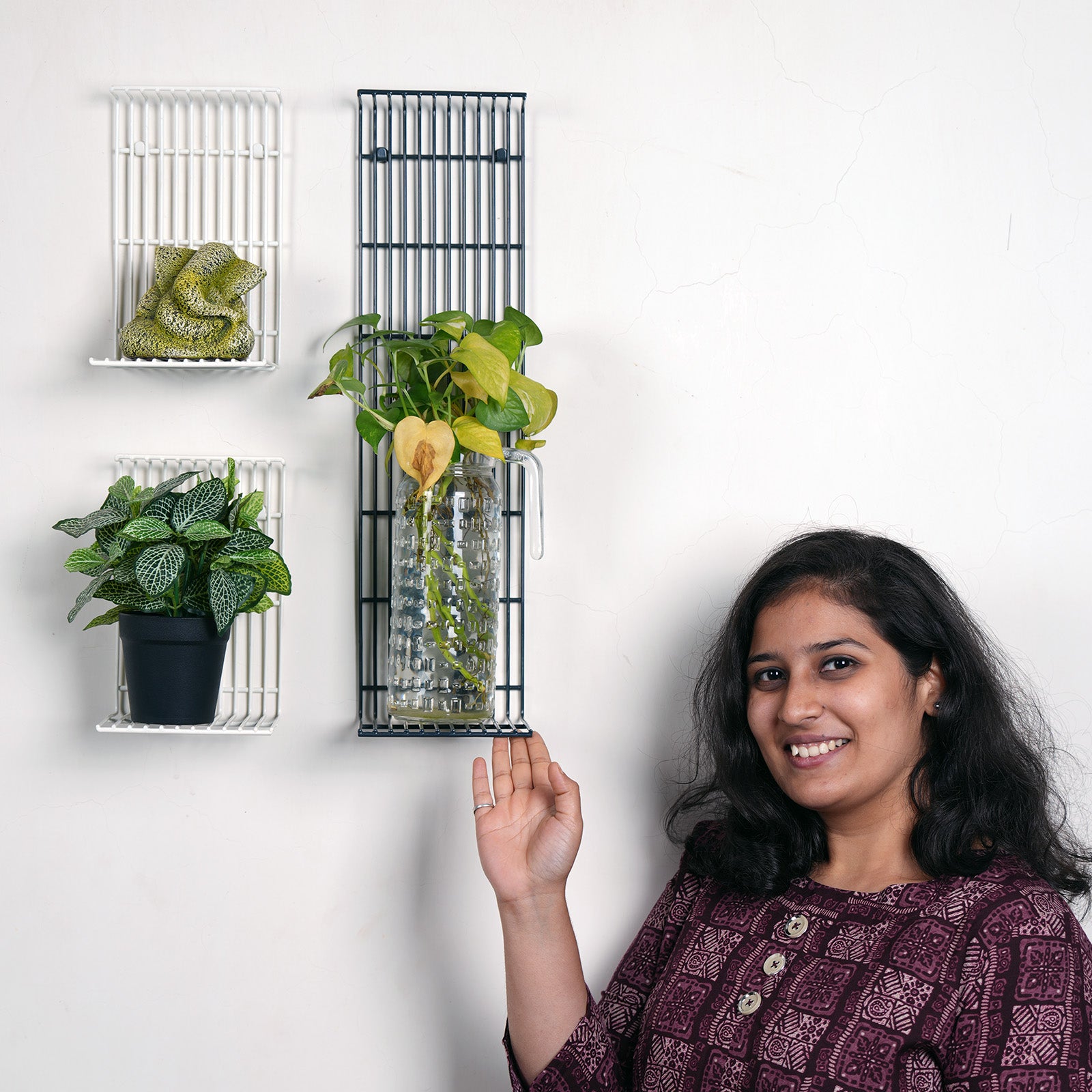 VERSATILE HOME DECOR: Embrace the versatility of Dunlin as it seamlessly blends with any corner of your home. Whether it's your bedroom, living room, kitchen, balcony, verandah, study, SOHO, office, or even your bathroom, this small and elegant shelf brings a touch of elegance and vitality to every space. Available in two sizes and three colors, the L-shaped mesh panel can be mounted in various configurations and patterns, tailored to your personal taste and the unique layout of your space. It becomes the perfect sanctuary for your books, keys, photos, mobile phones, plants, and other cherished decor items, while also doubling as a captivating pot stand for your garden decor.