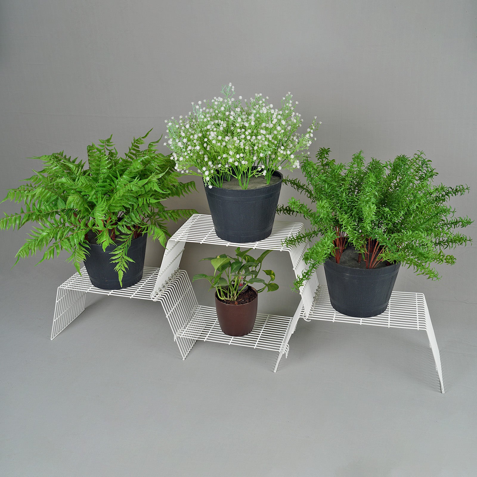 Potted plants can be added to multiple heights for a visually stunning and organized display.