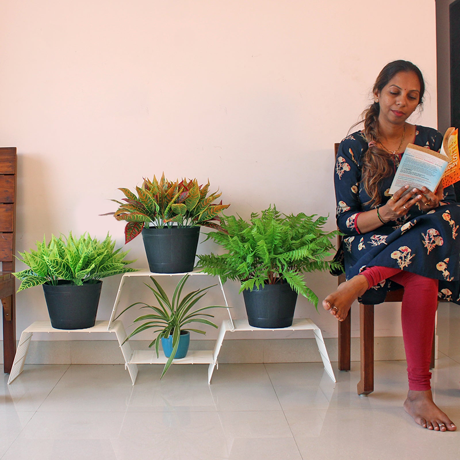 MULTI-PURPOSE SHELF: Grandis is not only a plant stand for Balcony, verandah or backyard. In addition to that its unique rhythmic style looks great in your living room as a bookshelf adding life to your reading corner or simply a shelf for your collectibles.