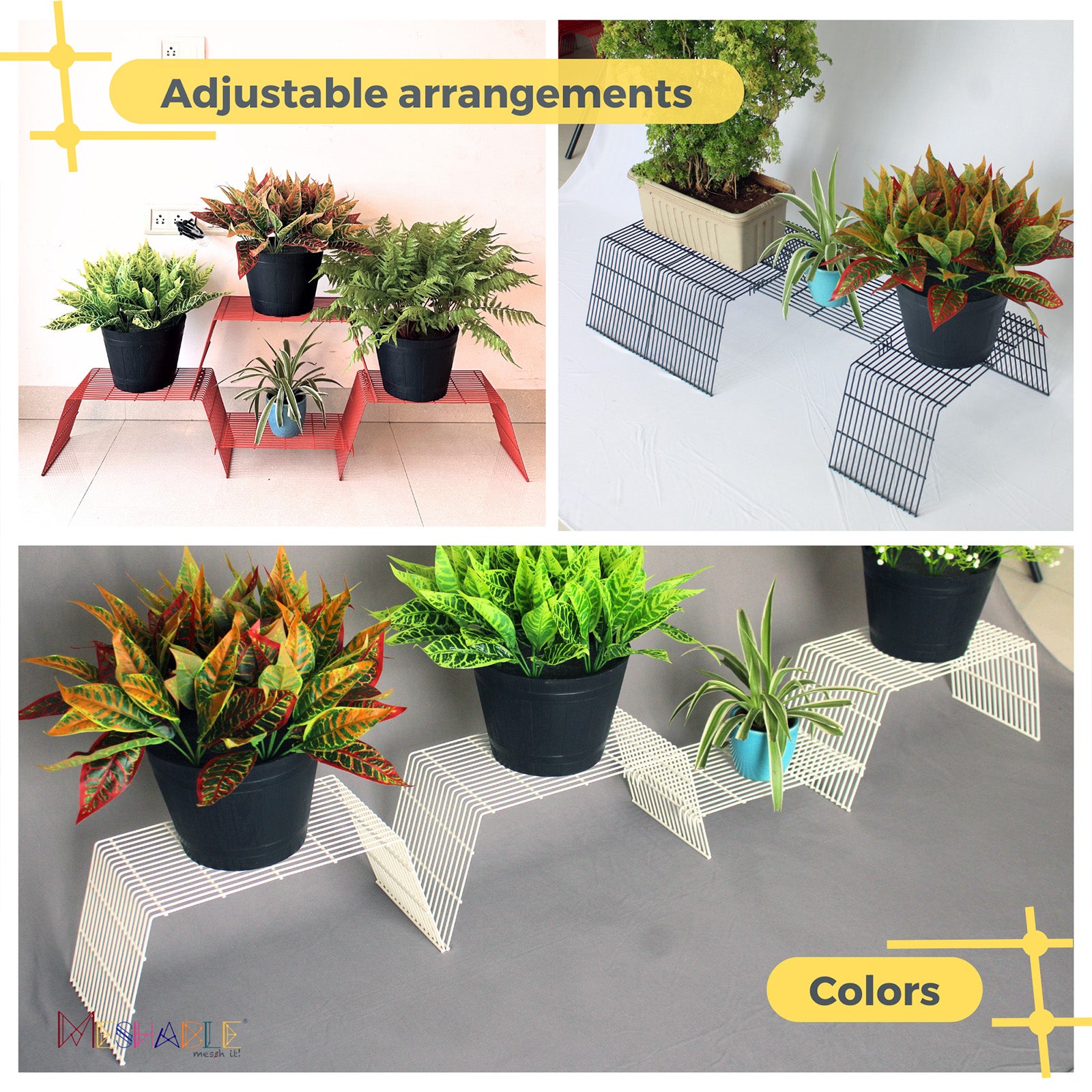 CRAFTED FOR BEAUTY & STYLE: Meshable's GRANDIS is a captivating floor-mounted plant stand that beautifully displays your beloved plants, indoors or outdoors plants and planters. Experience the joy of an organized garden with this unique planter stand, featuring an open grid structure made of metal mesh that prevents water stagnation and protects your flooring from unsightly stains. It can be arranged in a stunning honeycomb pattern adding elegance to your garden decor.