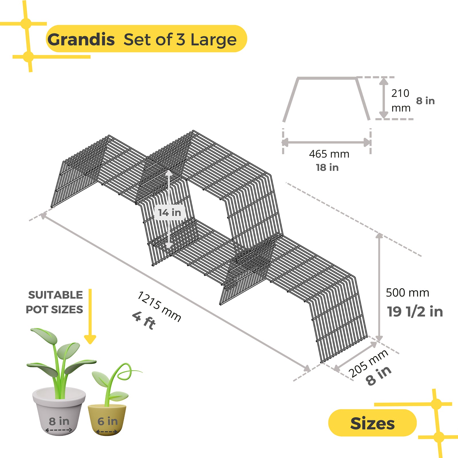 ORGANISE WITH STYLE: Create a mesmerizing honeycomb pattern by arranging multiple GRANDIS plant stands, adding a touch of elegance and harmony to your space. Plants and pots can be added to multiple heights adding to your garden decor. Transform your living space into a lush oasis and let your plants thrive in a visually stunning and organized display.