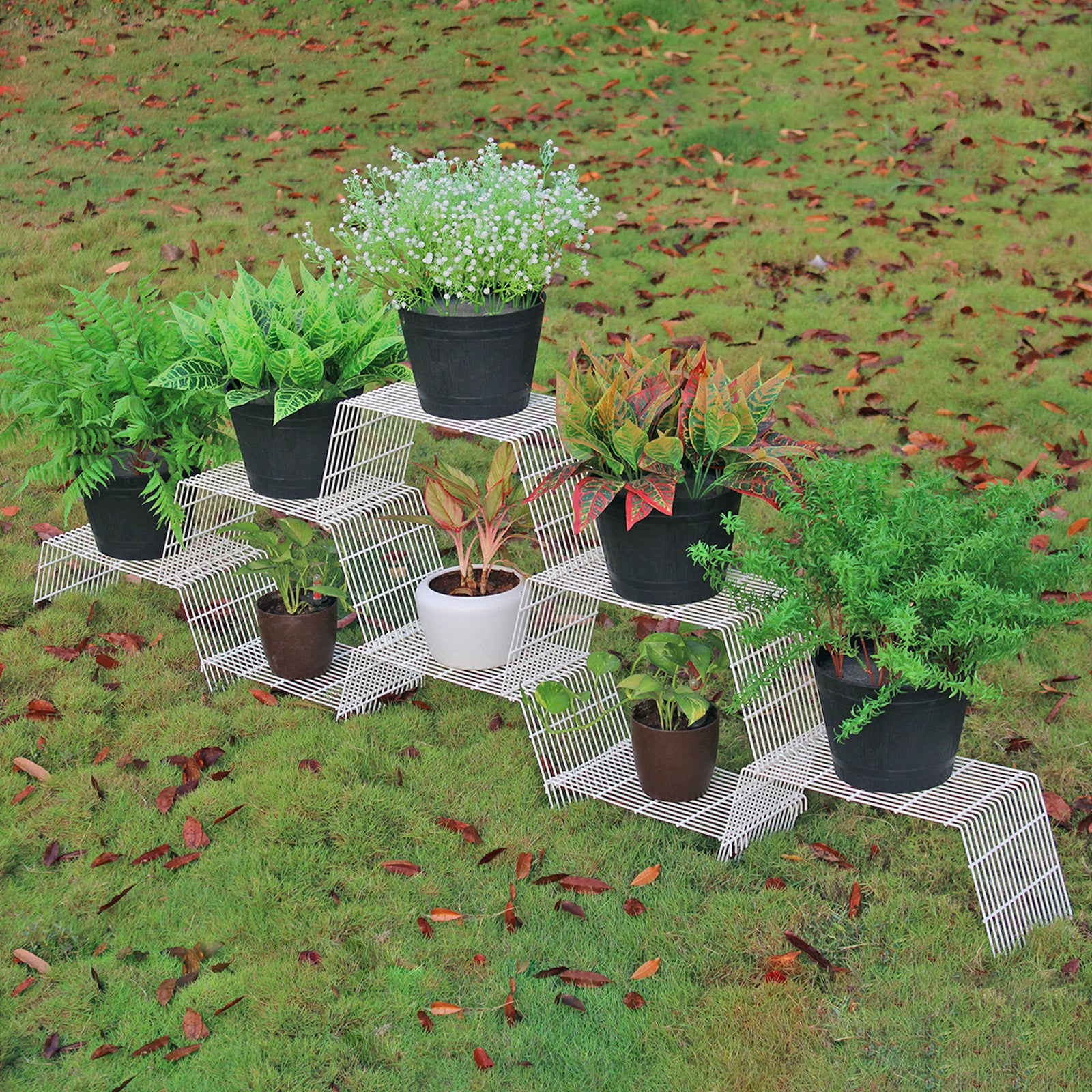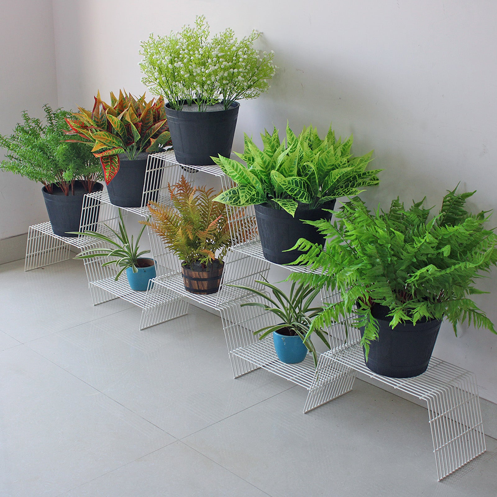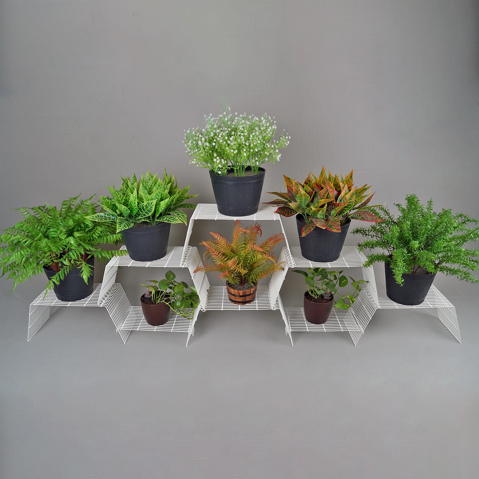 Potted plants can be added to multiple heights for a visually stunning and organized display.