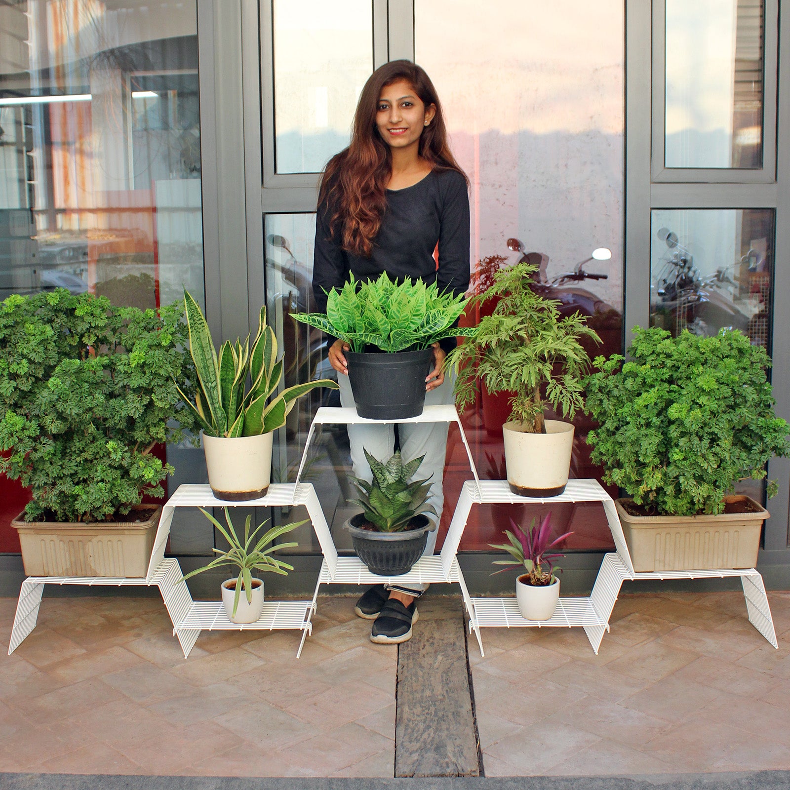 MULTI-PURPOSE SHELF: Grandis is not only a plant stand for Balcony, verandah or backyard. In addition to that its unique rhythmic style looks great in your living room as a bookshelf adding life to your reading corner or simply a shelf for your collectibles.