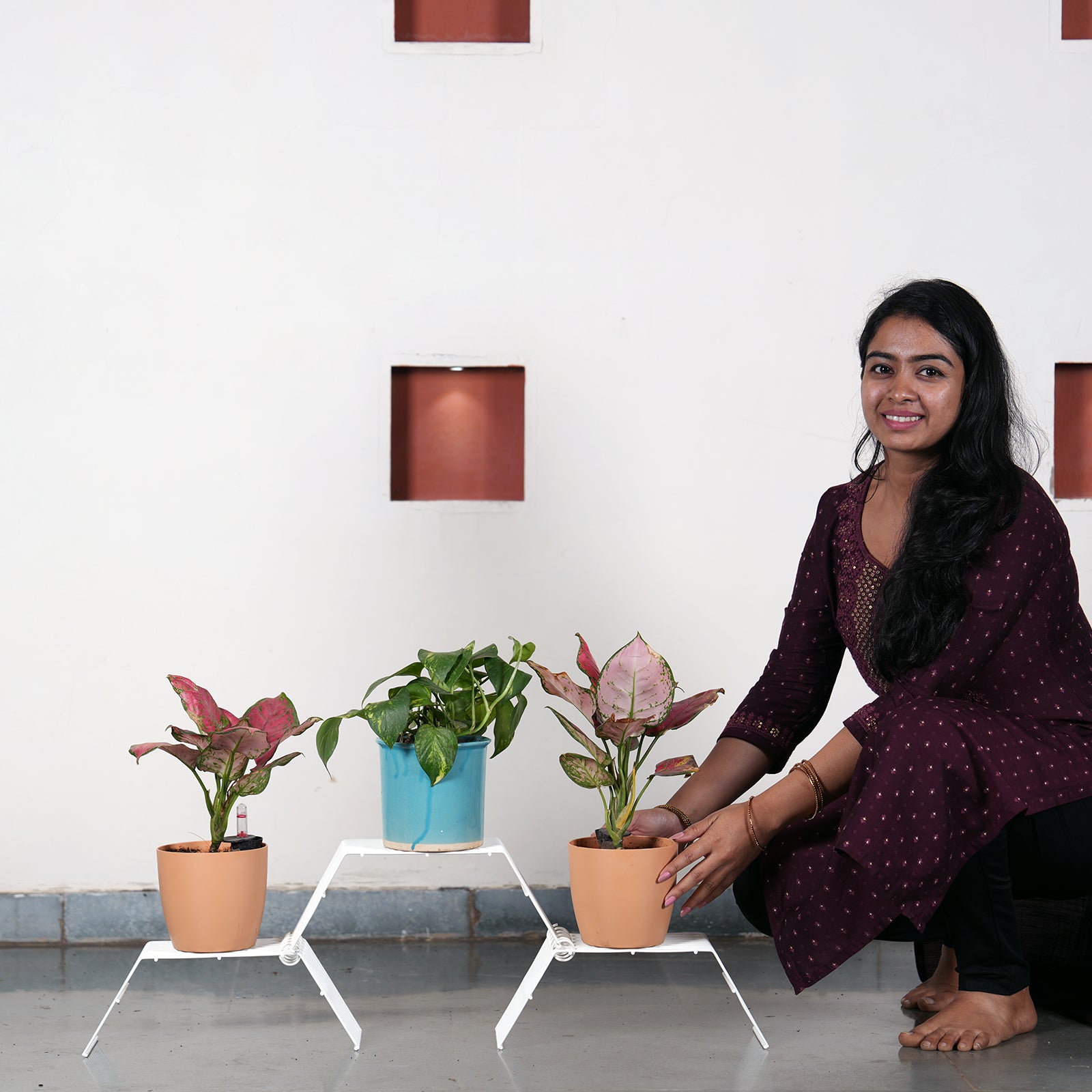 DURABLE- LONG RUST FREE LIFE: Durability is at the core of Grandis's design. The highly rust-resistant GI wire mesh, meticulously machine-welded and powder-coated in a controlled environment, ensures a long and rust-free life. This makes Grandis suitable as a durable plant stand for your balcony, allowing it to withstand the elements, be it rain or shine, without compromising its beauty. Let this rust proof pot stand be your constant companion, whether gracing your balcony, verandah, or even your living room, window ledge or entrance foyer.