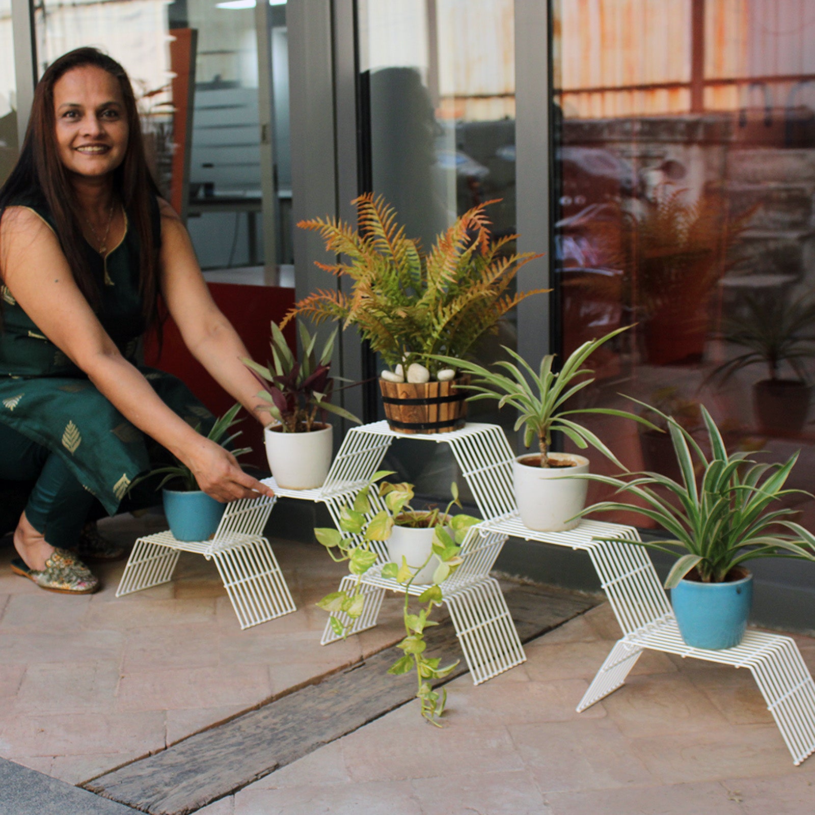 DURABLE- LONG RUST FREE LIFE: Durability is at the core of Grandis's design. The highly rust-resistant GI wire mesh, meticulously machine-welded and powder-coated in a controlled environment, ensures a long and rust-free life. This makes Grandis suitable as a durable plant stand for your balcony, allowing it to withstand the elements, be it rain or shine, without compromising its beauty. Let this rust proof pot stand be your constant companion, whether gracing your balcony, verandah, or even your living room, window ledge or entrance foyer.