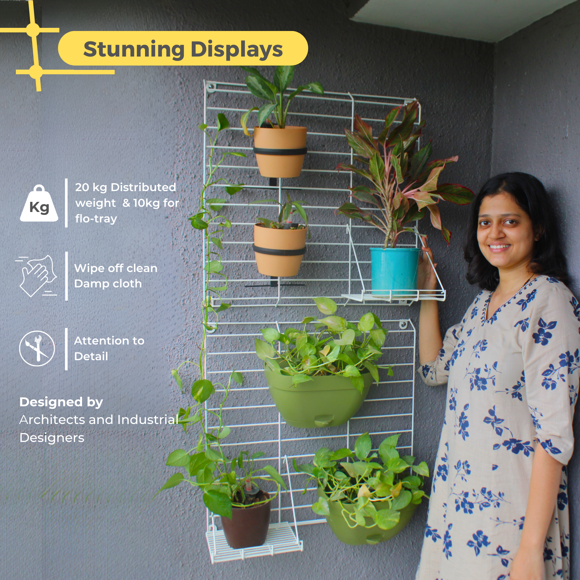 CREATE YOUR OWN VERTICAL GARDEN: Meshable's Grellis Grid combines minimalist design with practicality, providing a secure and charming canvas for your plants while enhancing the overall aesthetic appeal of your space. A wall mounted solution for all urban home gardens, an innovative use of your walls to create your own urban vertical garden.