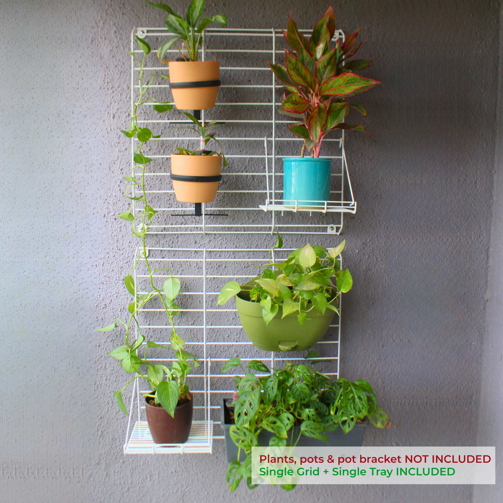 VERSATILE ARRANGEMENTS, MODULAR FREEDOM, UNIQUE AESTHETIC: Grelllis Grid, a simple innovative vertical gardening frame to support your hanging planters without occupying any floor space. It is designed with a unique mesh pattern that is sturdy to support your vines and multilayers of other flower pots. This metal mesh wall support can be installed in two different ways. Install it with most wires in vertical manner like a trellis to support your creepers/ vegetable vines. Most wires in horizontal manner will facilitate more hanging pots and planters in mesmerizing arrangements.
