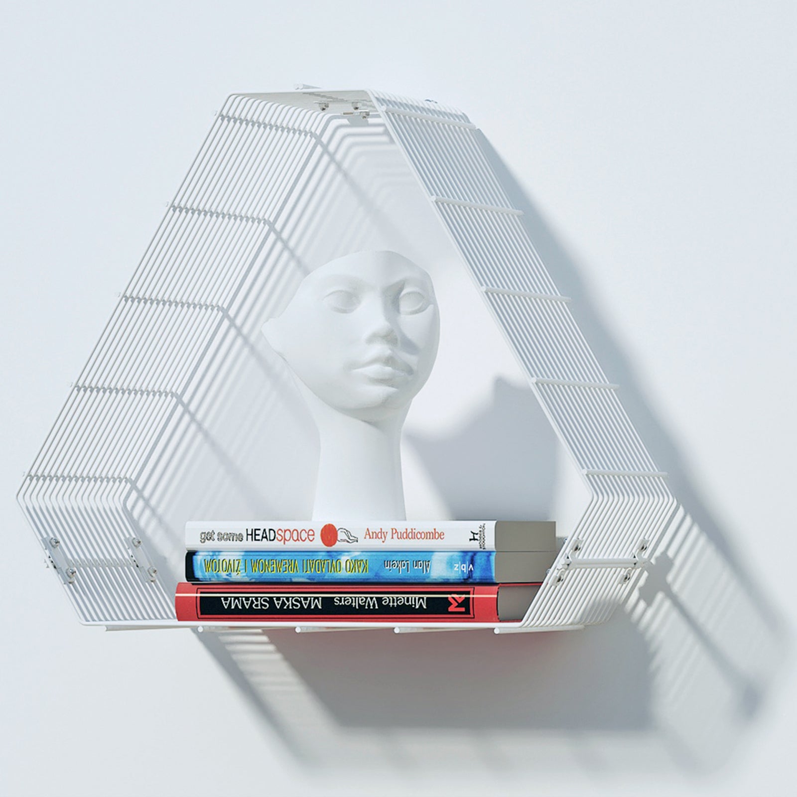 Kinglet is modular wall mounted shelf with a distinctive geometry that adds a new dimension to your space.