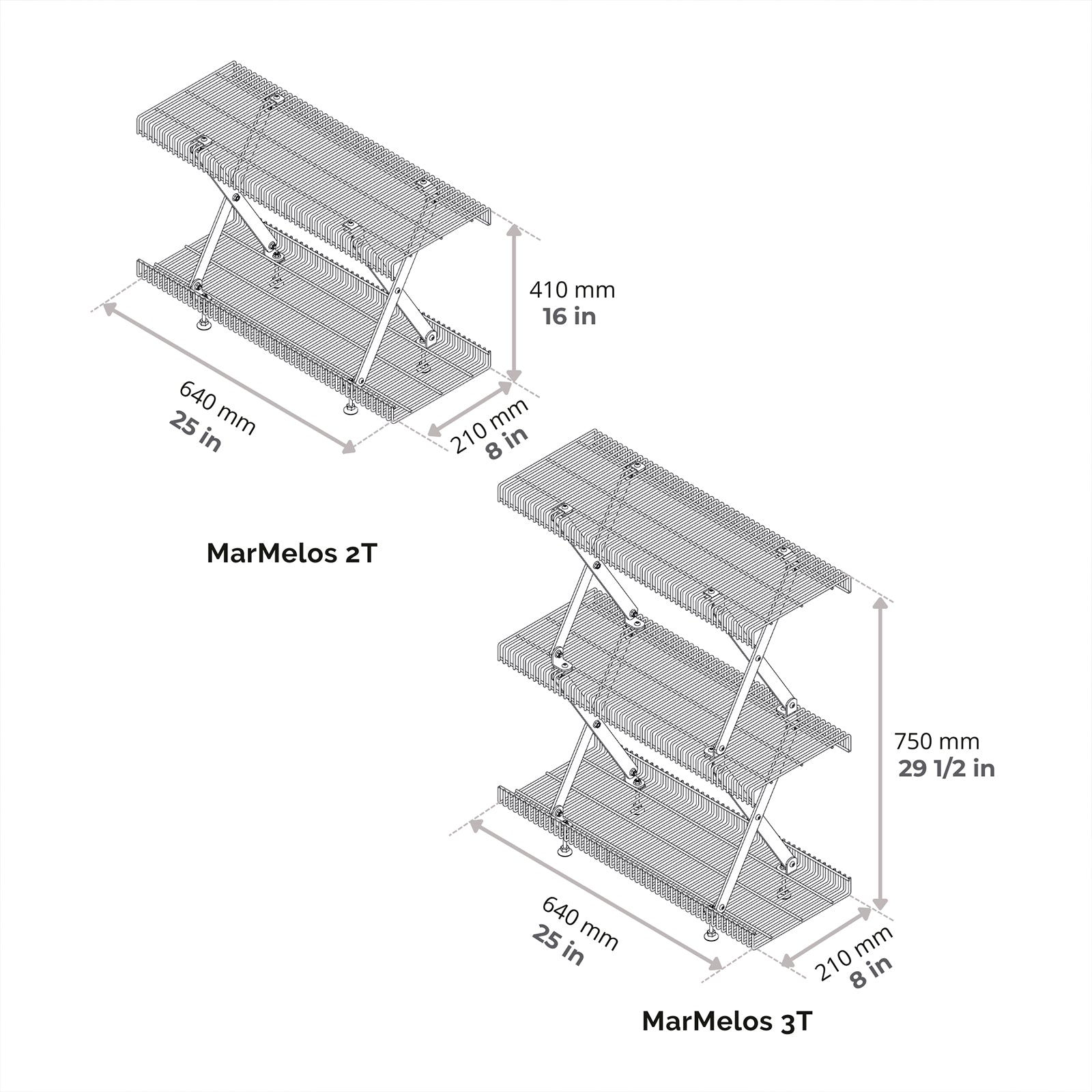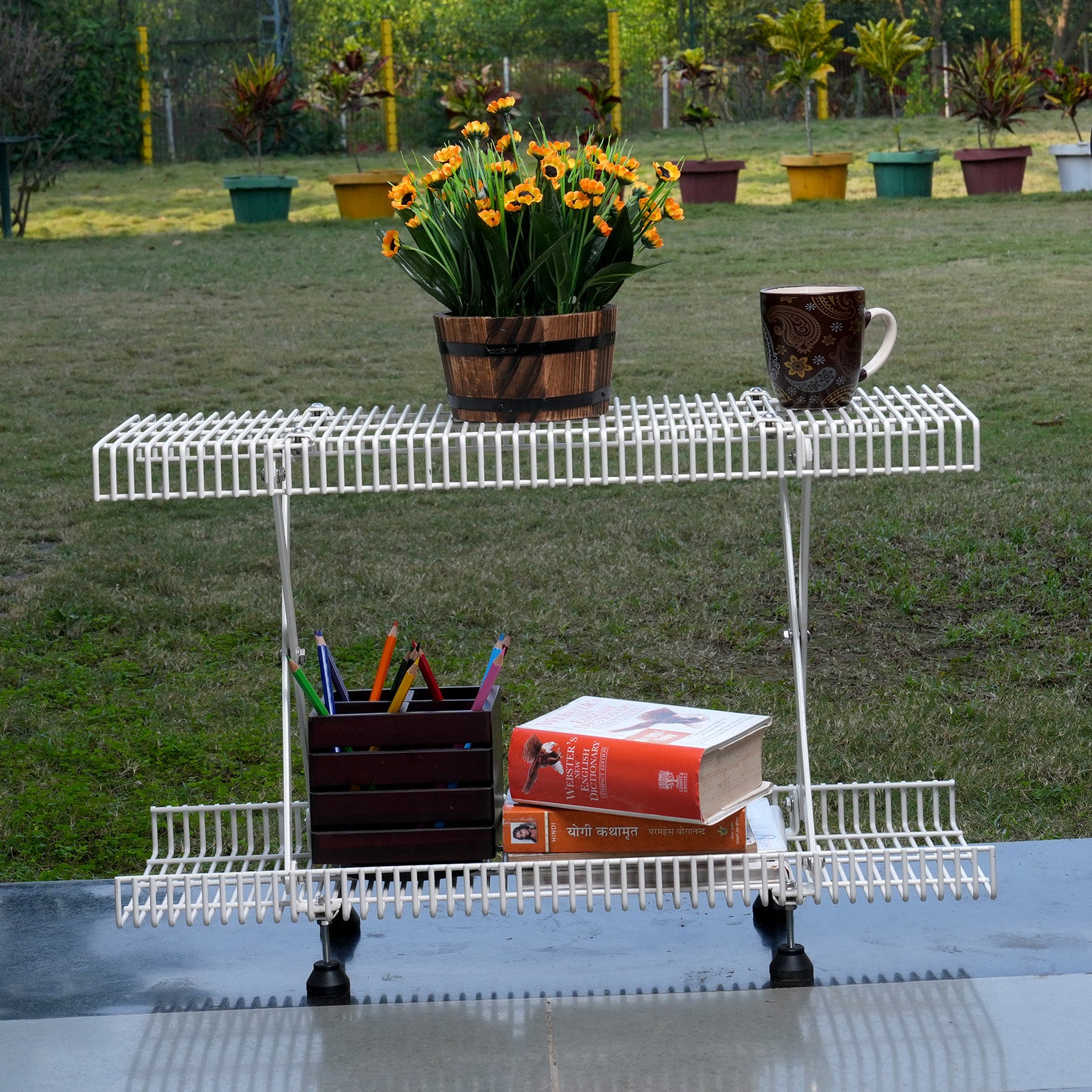 VERSATILE & MULTI-PURPOSE: Versatility is at the heart of MarMelos. This tiered multipurpose stand is meticulously crafted with a unique scissor support design, exuding a captivating character that effortlessly enhances any living space. Its simple yet captivating metal mesh stand serves as a perfect organizer, accommodating not only your beloved potted plants but also your cherished books and treasured possessions. Available in 3-tiers and 2-tiers, MarMelos adapts to your needs. In its 2-tiered avatar, it effortlessly transforms into a stylish garden bench, creating a serene and inviting space for relaxation. Whether as a book rack in your study, a standing shelf for easy access items in the living room, or a stunning organizer for your pots and plant as an outdoor and indoor garden plant stand.