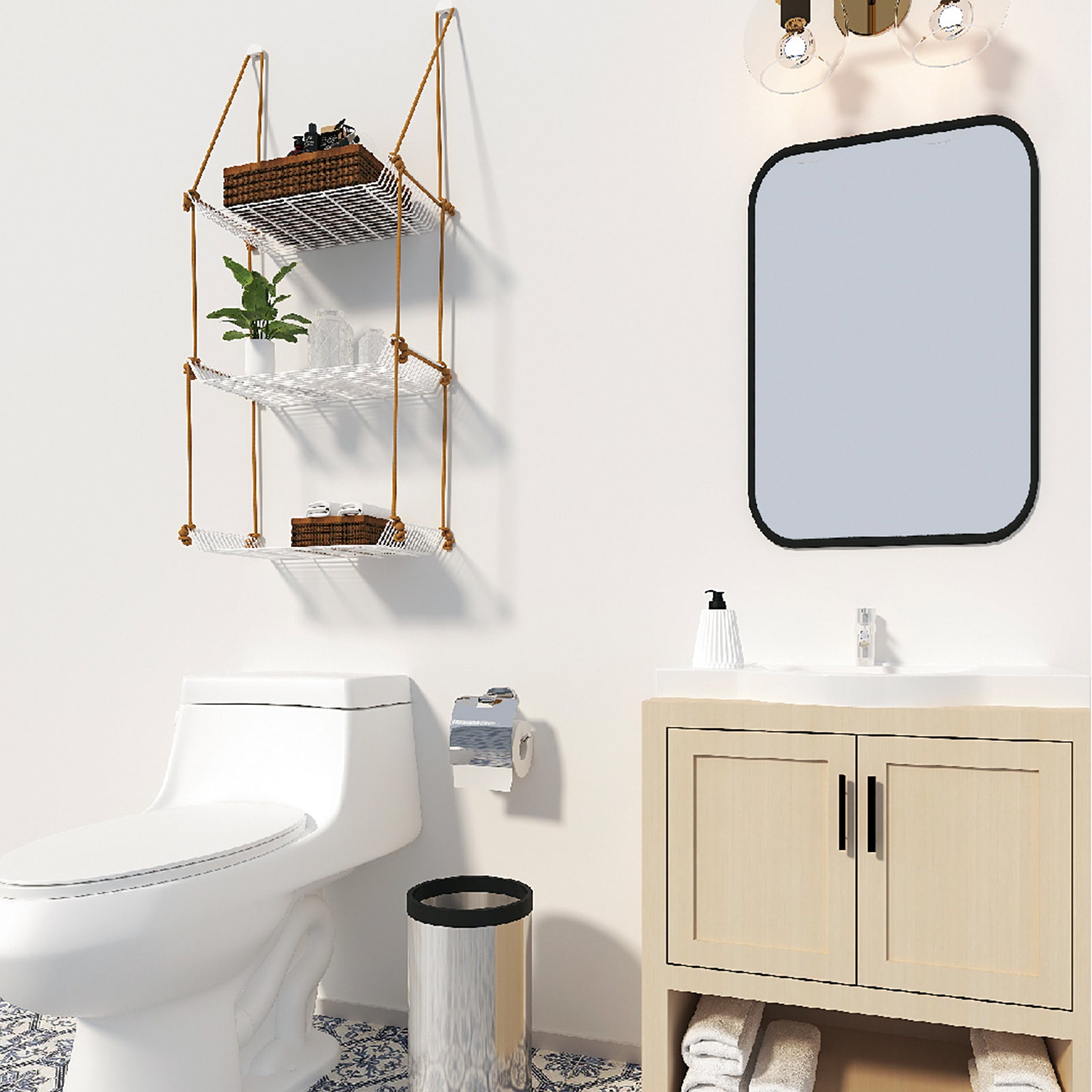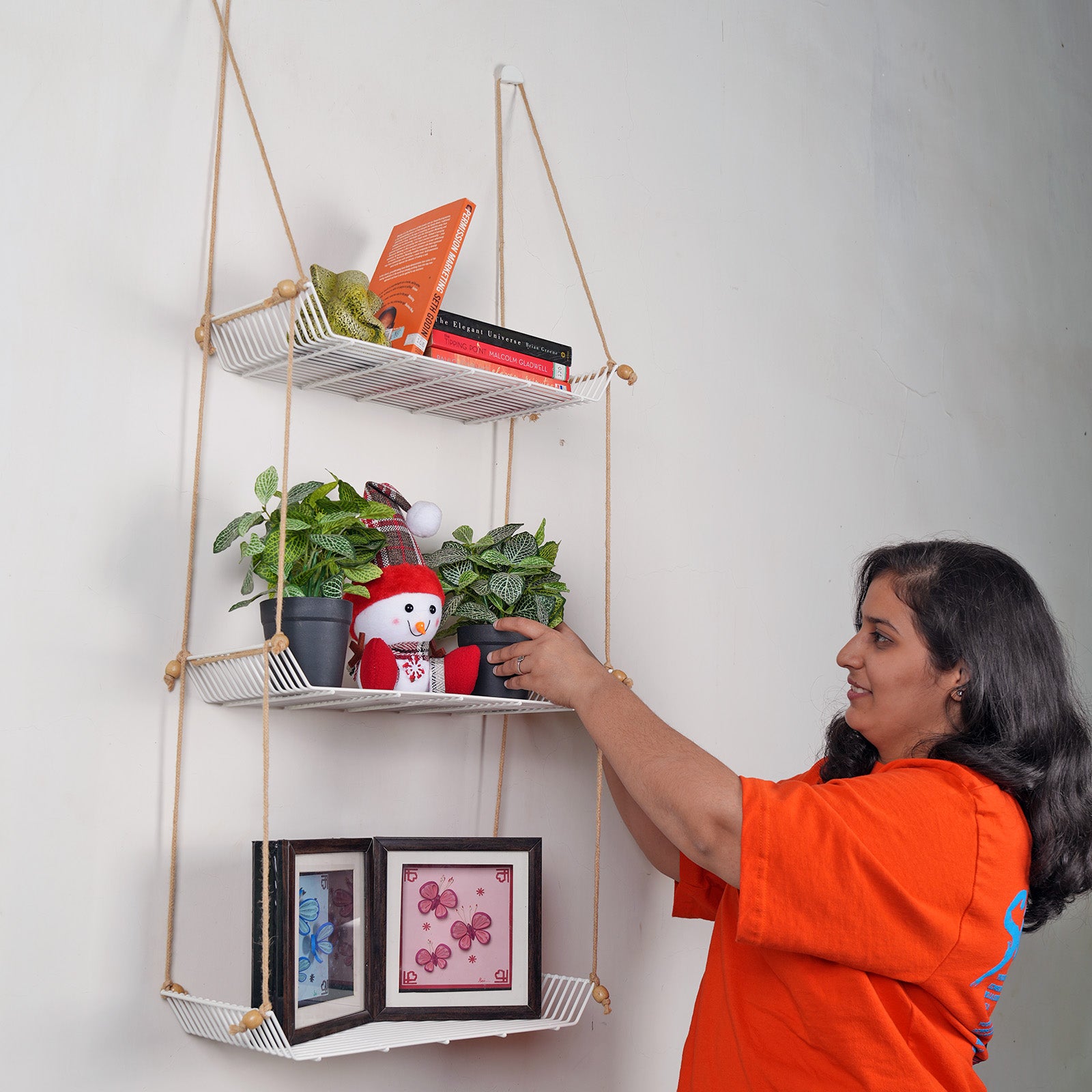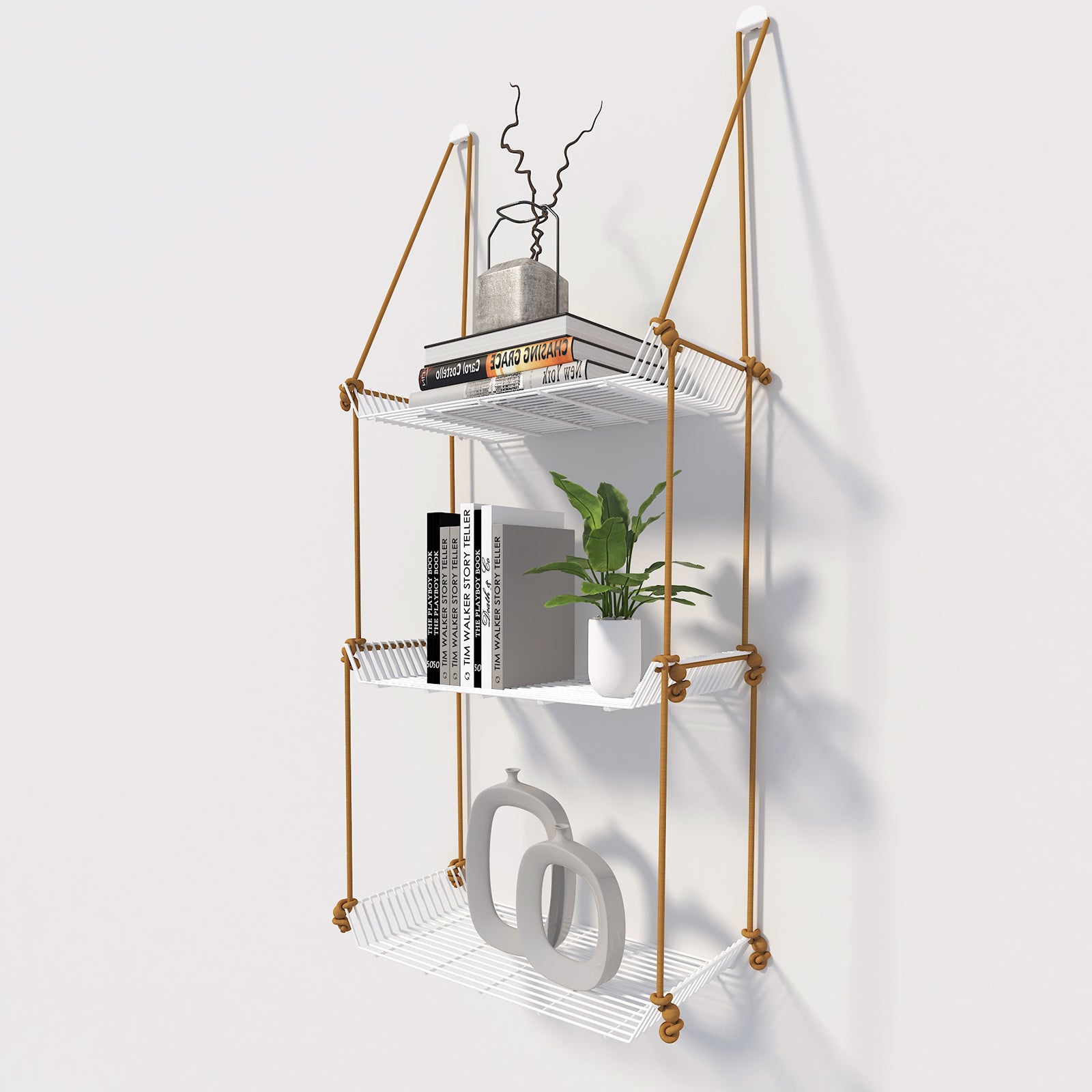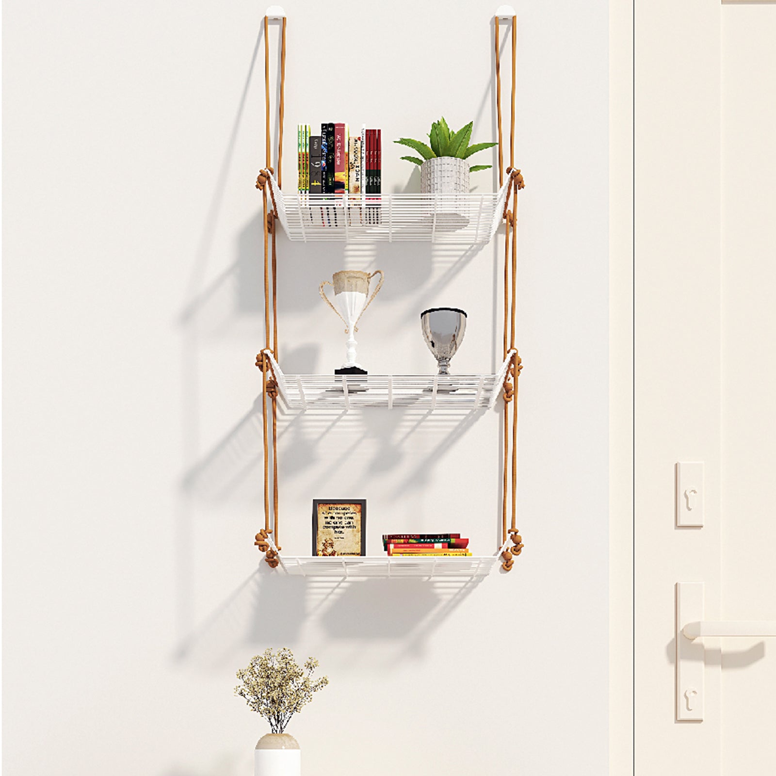 STRONG, STURDY YET FLOATING: Weebill wall shelf is designed to carry 3 kg per tier weight with ease. It comes with wall brackets of matching colour, high quality Jute ropes (measuring 100 cm each) and wooden beads. These elements provide extra strength and support and a distinct aesthetic complimenting the metal mesh sleek look.